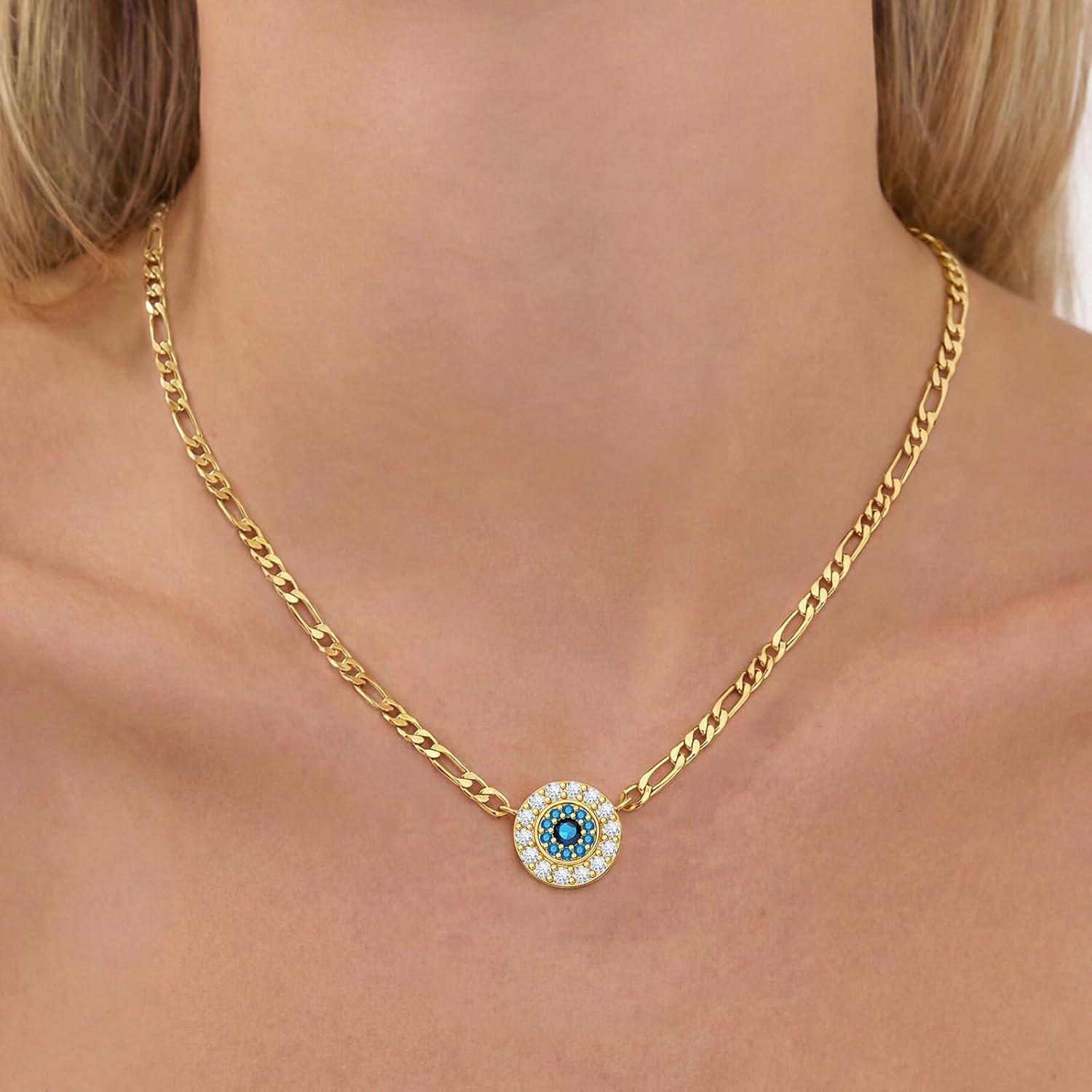 Be the first to review “Cicy Bell 18k Gold Brass Necklace For Women Trendy Shining Evil Eye Cubic Zirconia Figaro Chain Choker Necklace Jewelry Gifts(Gold)” Cancel reply