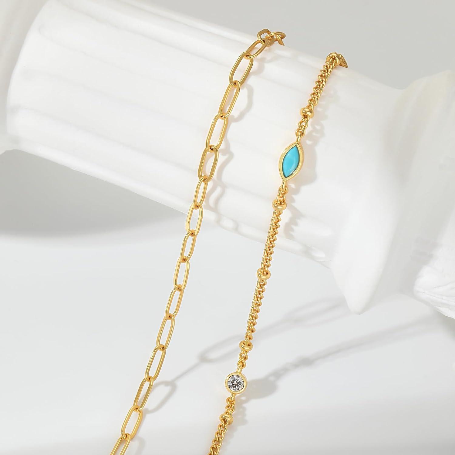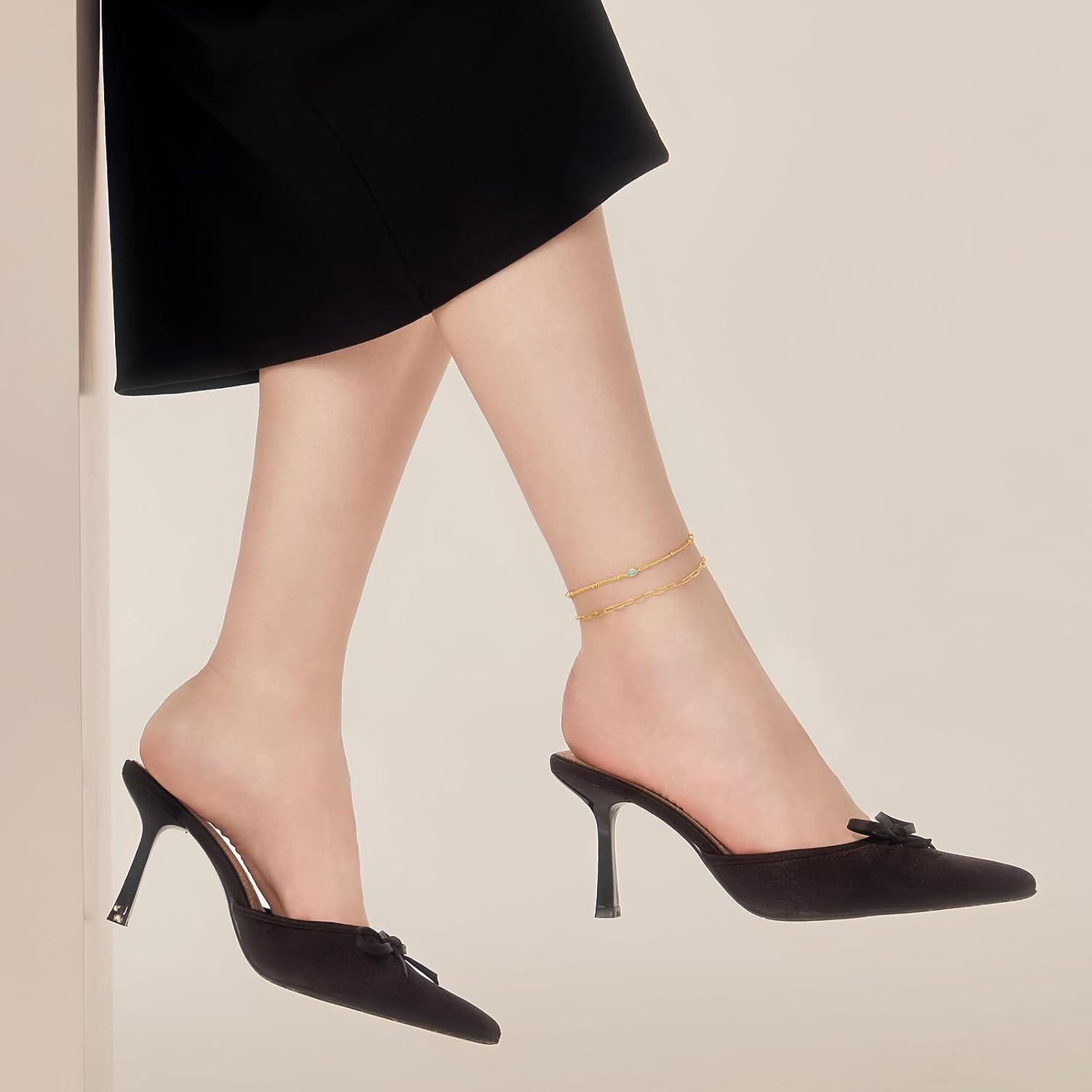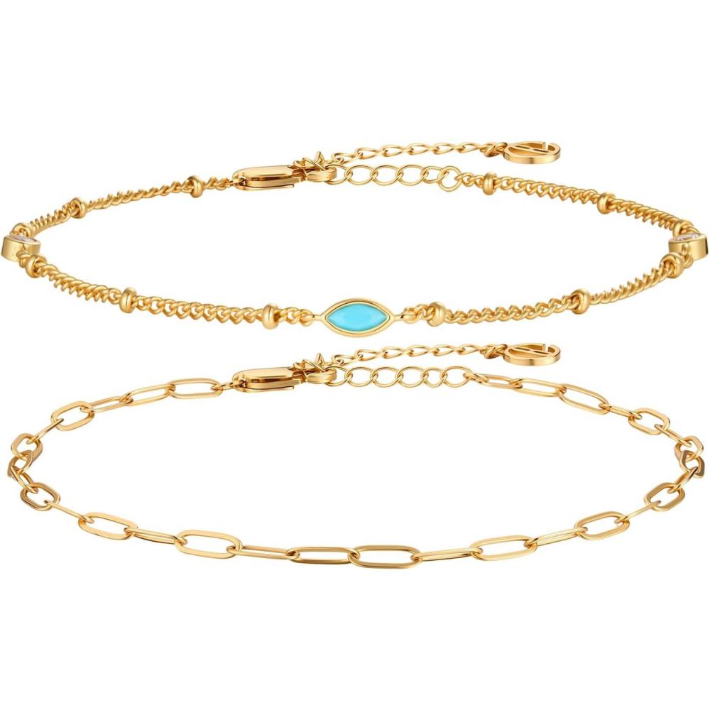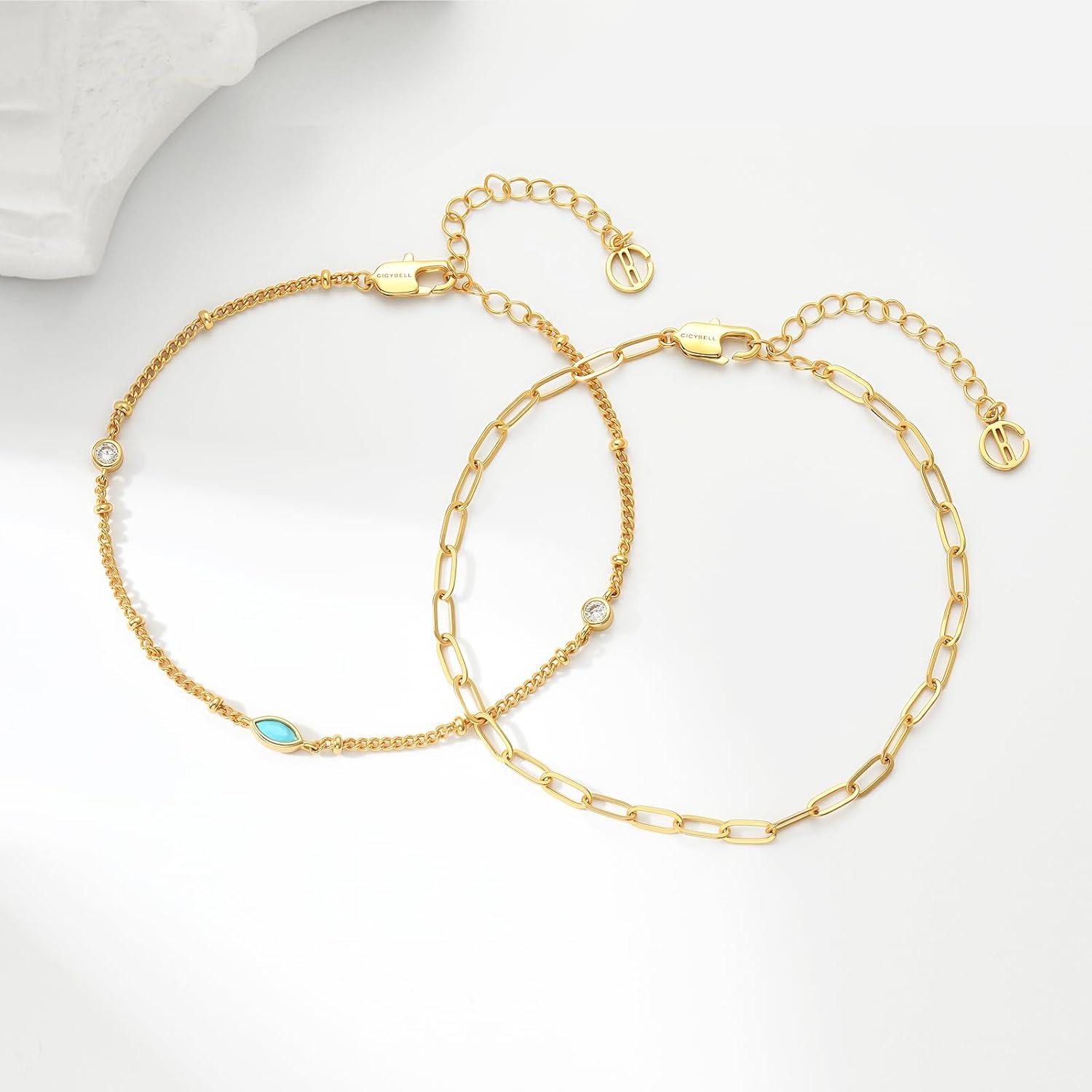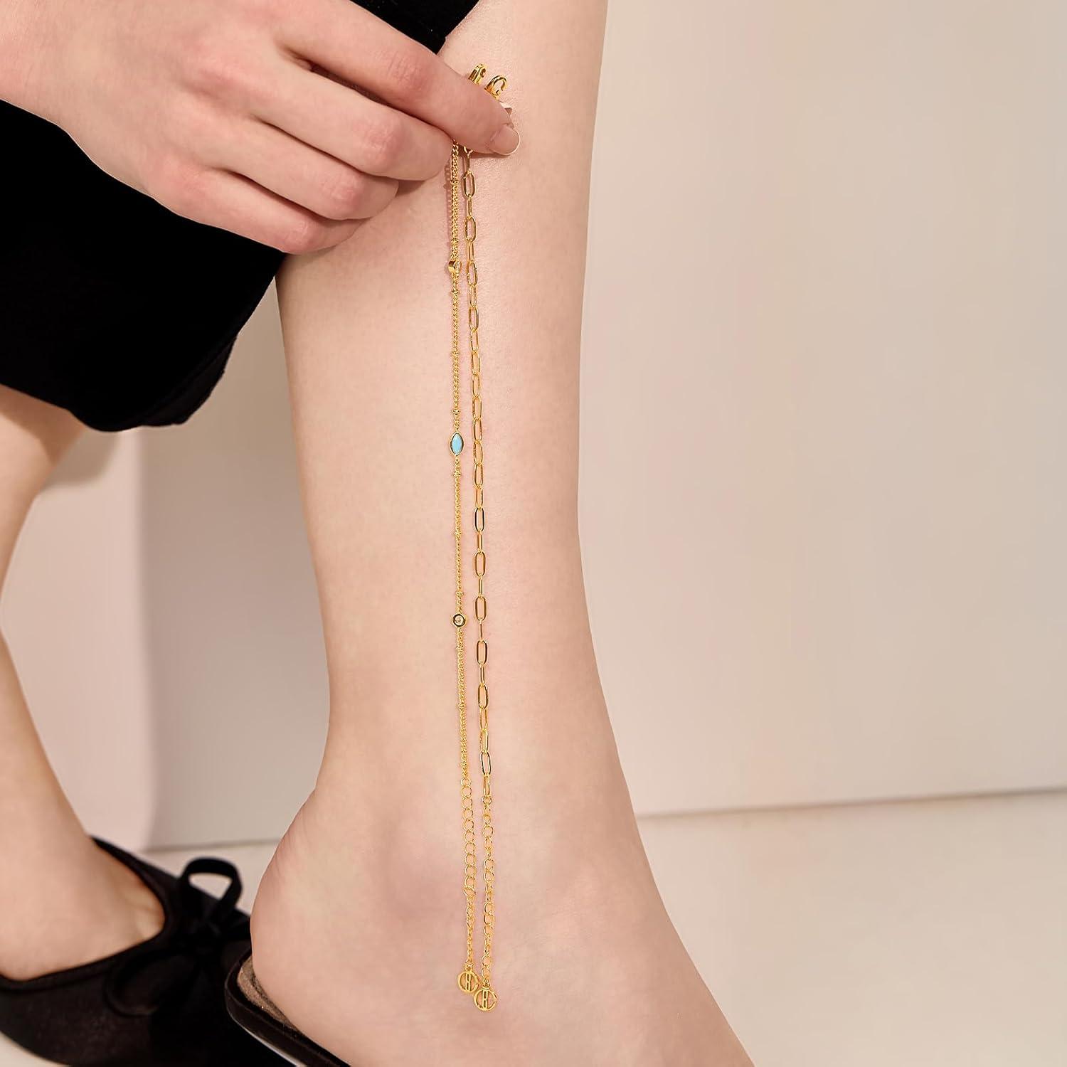 Cicy Bell Ankle Bracelets for Women 18K Gold Marquise Opal Layered Anklets Non Tarnish Summer Beach Jewelry Gift(Ankle Bracelets)