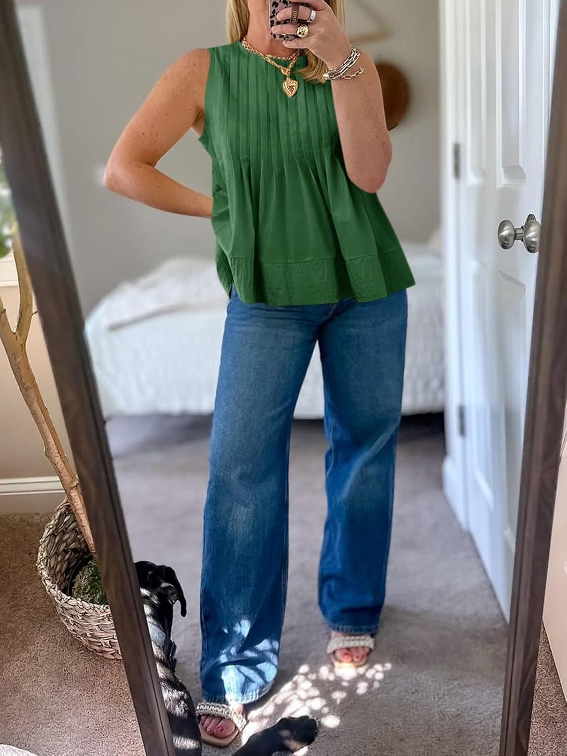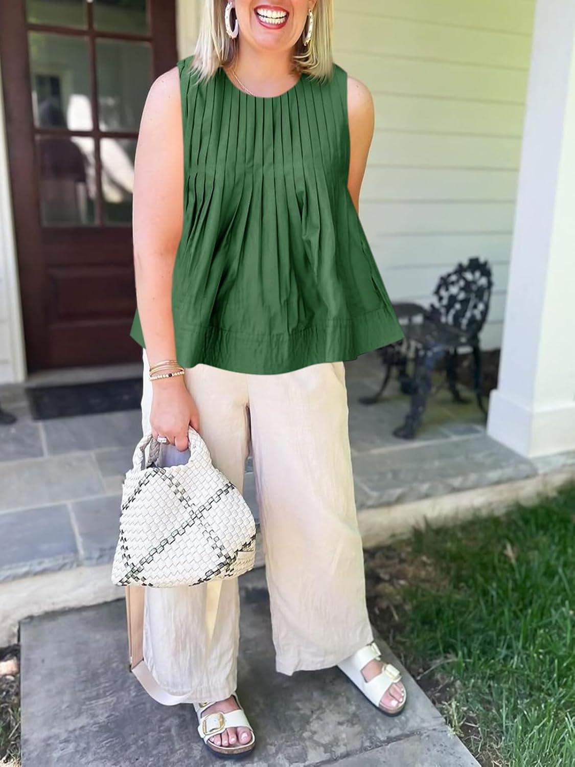 Cicy Bell Pleated Peplum Tank Tops for Women Summer Casual Sleeveless Womens Babydoll Blouse Flowy Cotton Shirt(Green)