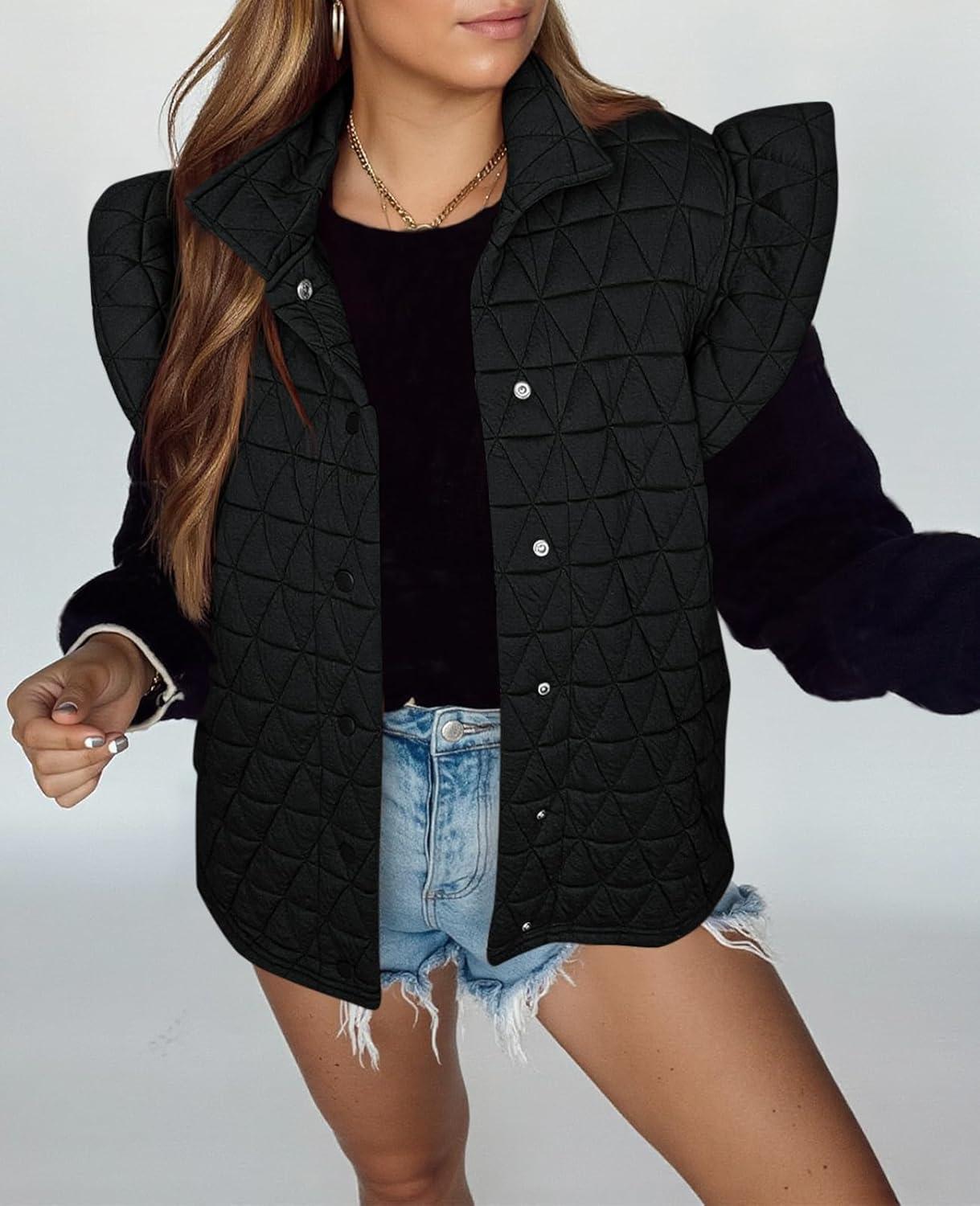 Be the first to review “Cicy Bell Women Ruffles Puffer Vest Sleeveless Button Down Padded Jacket Gilet Trendy Spring Outerwear(Black)”