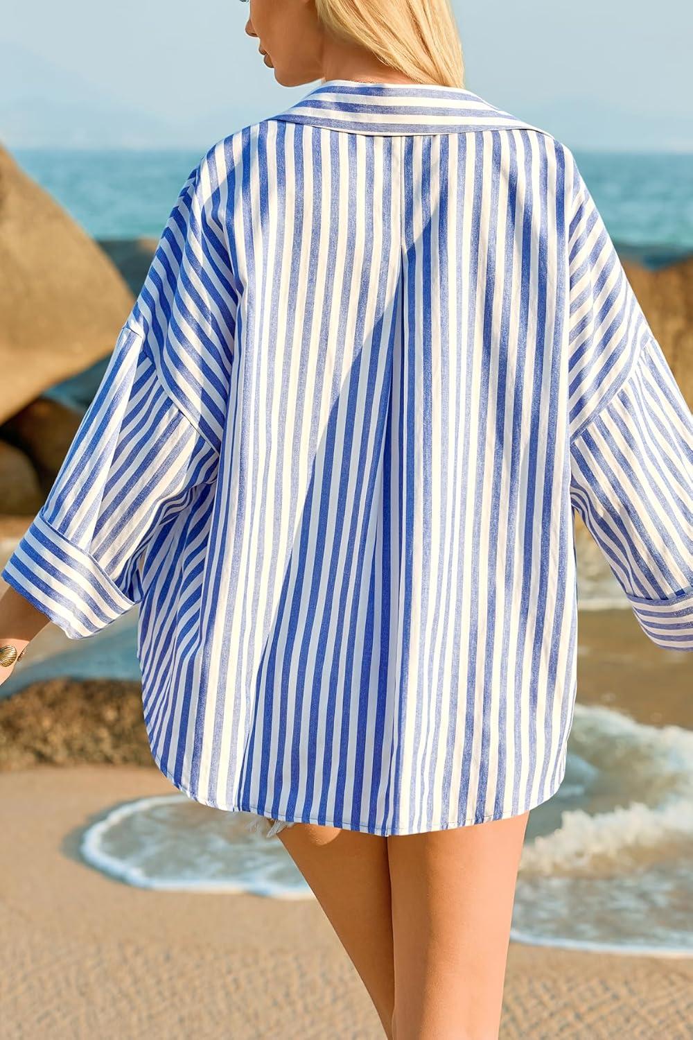 Be the first to review “Cicy Bell Womens 3/4 Sleeve Striped Button Down Shirts Summer V Neck Tops Casual Loose Fit Work Blouse(Blue)”