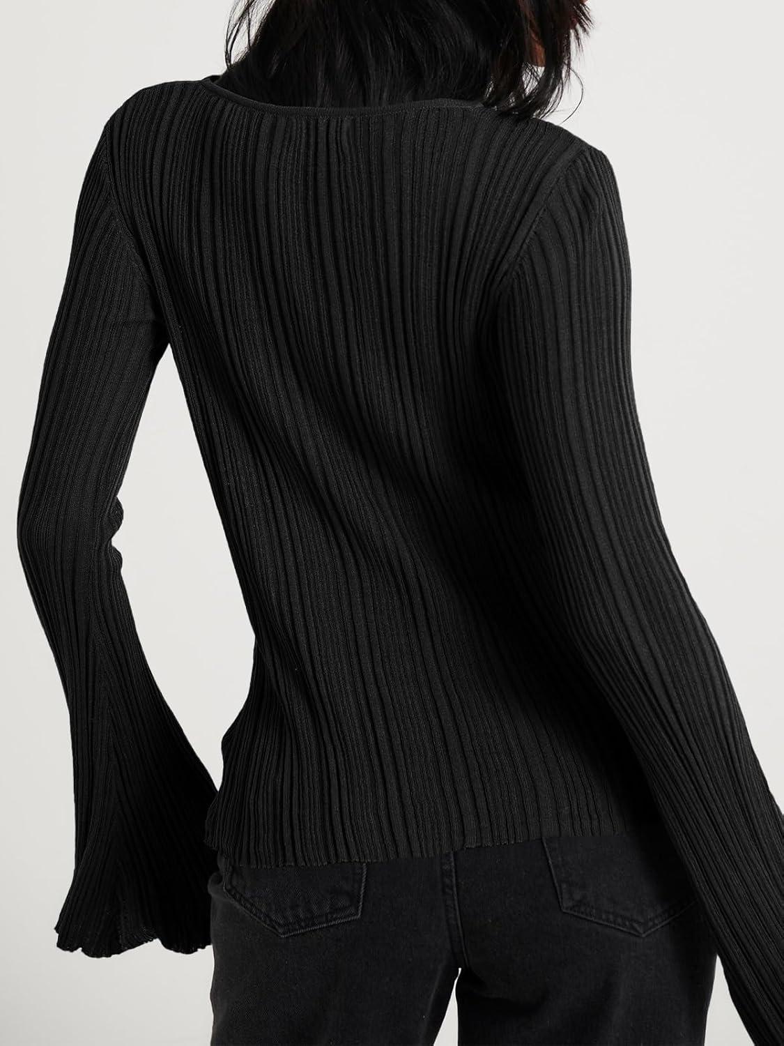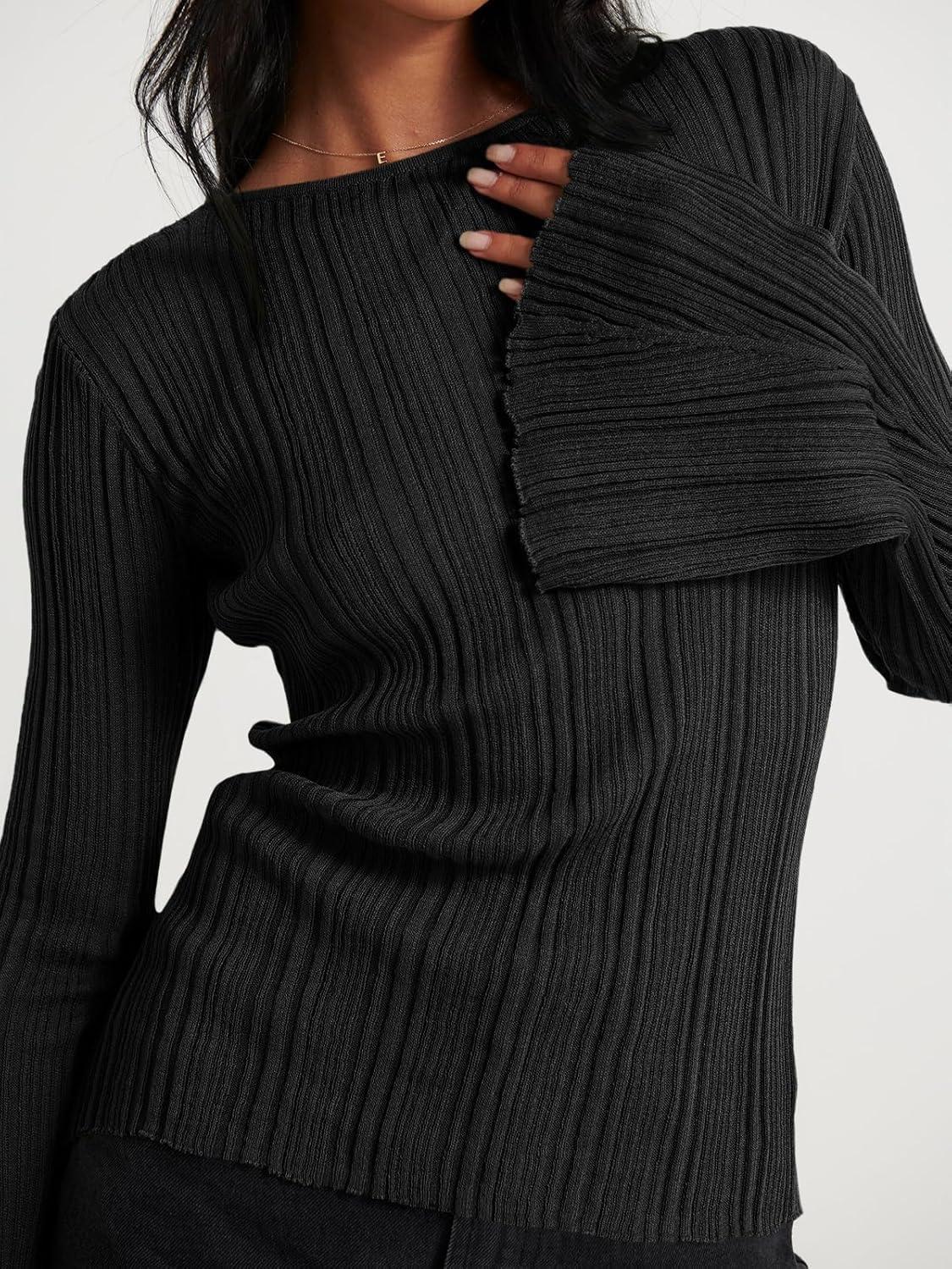 Cicy Bell Womens Bell Long Sleeve Tops Going Out Knitted Fall Pullover Lightweight Sweater Shirts(Black)