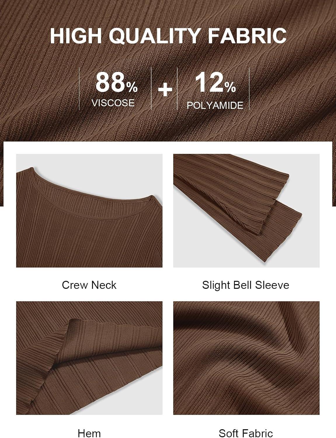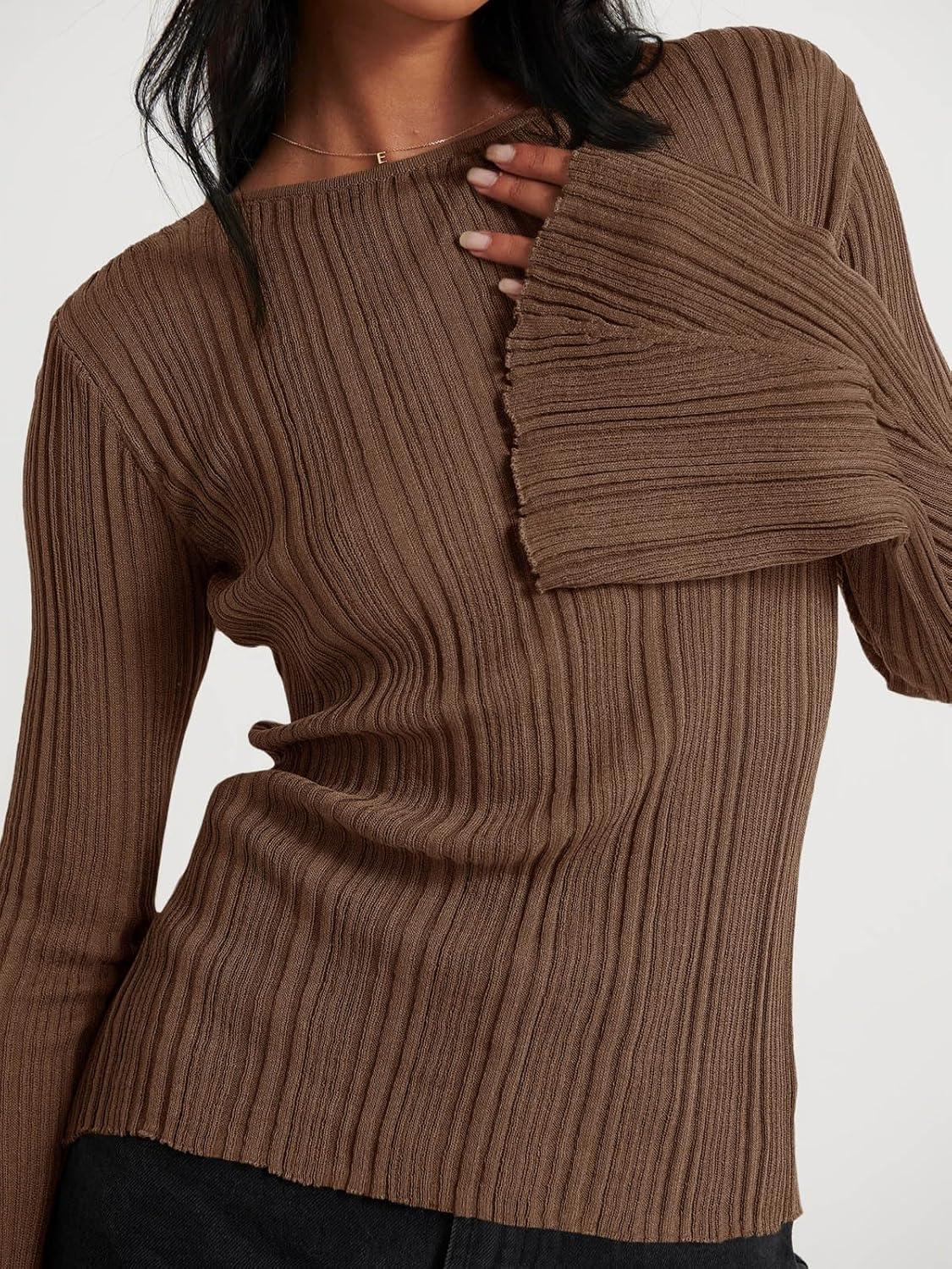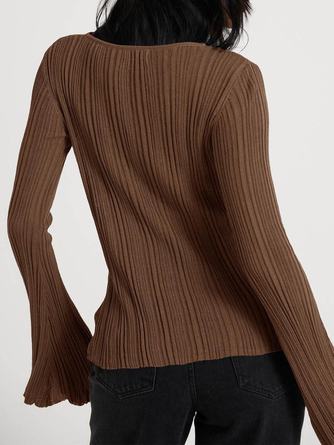 Cicy Bell Womens Bell Long Sleeve Tops Going Out Knitted Fall Pullover Lightweight Sweater Shirts(Coffee)