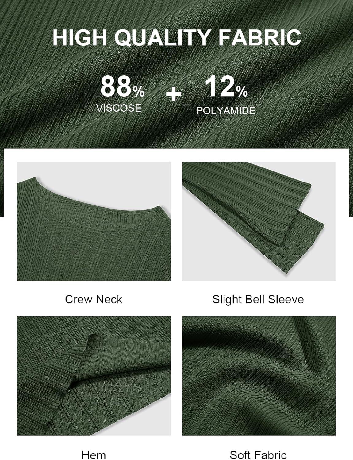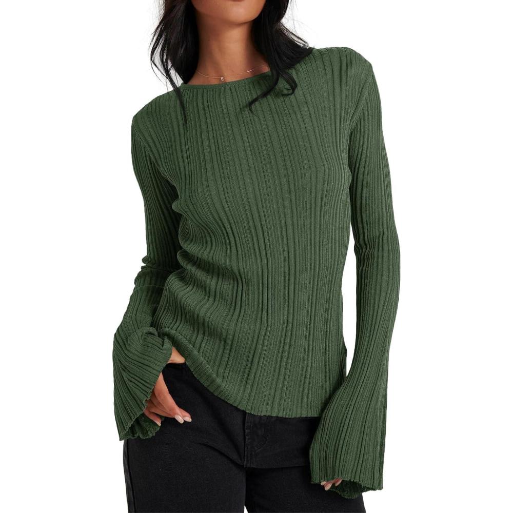 Cicy Bell Womens Bell Long Sleeve Tops Going Out Knitted Fall Pullover Lightweight Sweater Shirts(Green)