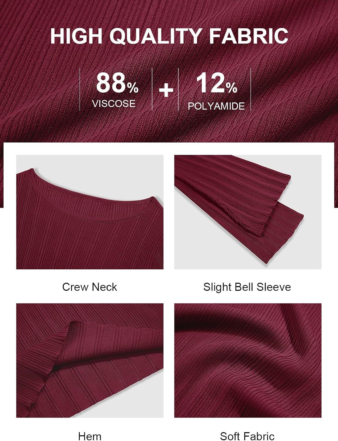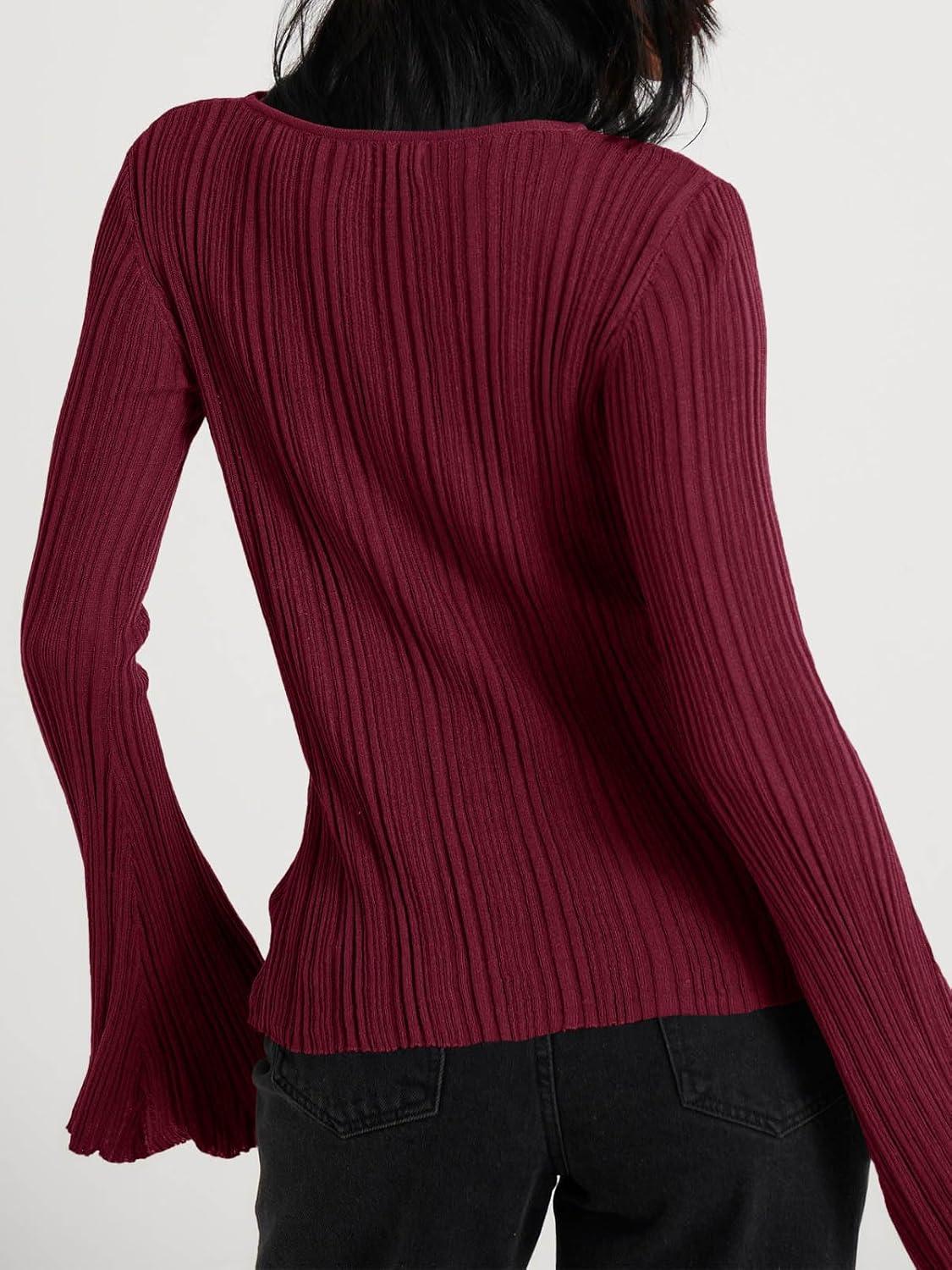 Cicy Bell Womens Bell Long Sleeve Tops Going Out Knitted Fall Pullover Lightweight Sweater Shirts(Wine Red)
