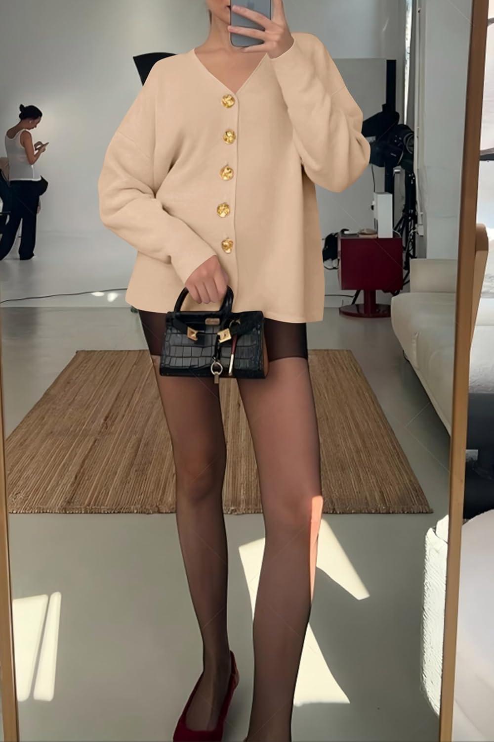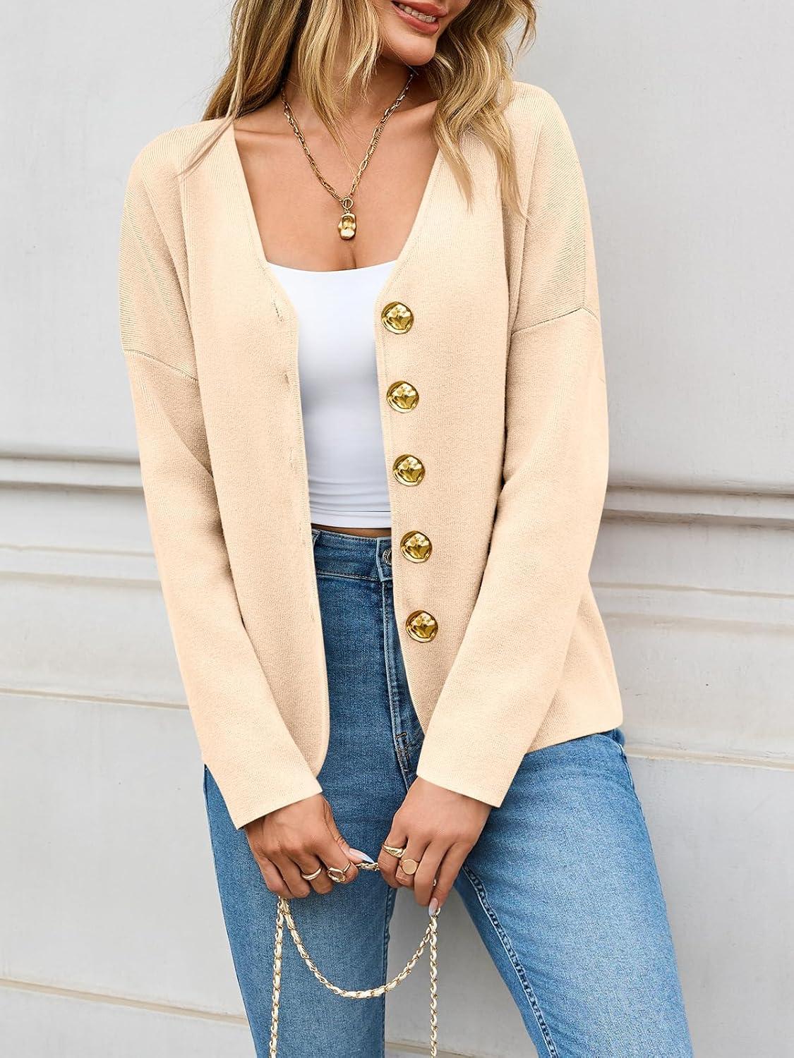 Cicy Bell Womens Button Up Cardigan Sweaters Blazer Trendy Lightweight V Neck Long Sleeve Sweater Tops Cream