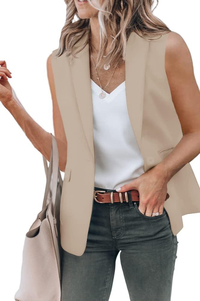 Cicy Bell Women's Casual Blazer Short Sleeve Lapel Open Front Work Office Suit Jacket(Z-light Khaki)