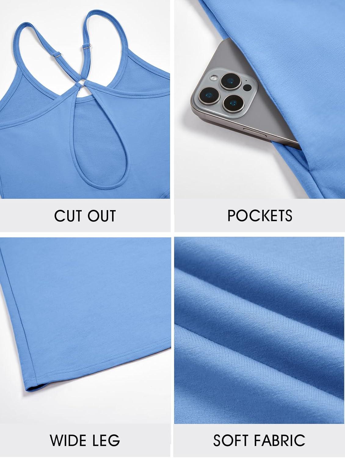 imageCicy Bell Womens Casual Wide Leg Jumpsuits Summer Spaghetti Strap Sleeveless Cut Out Loose Long Pant Rompers with PocketsBlue