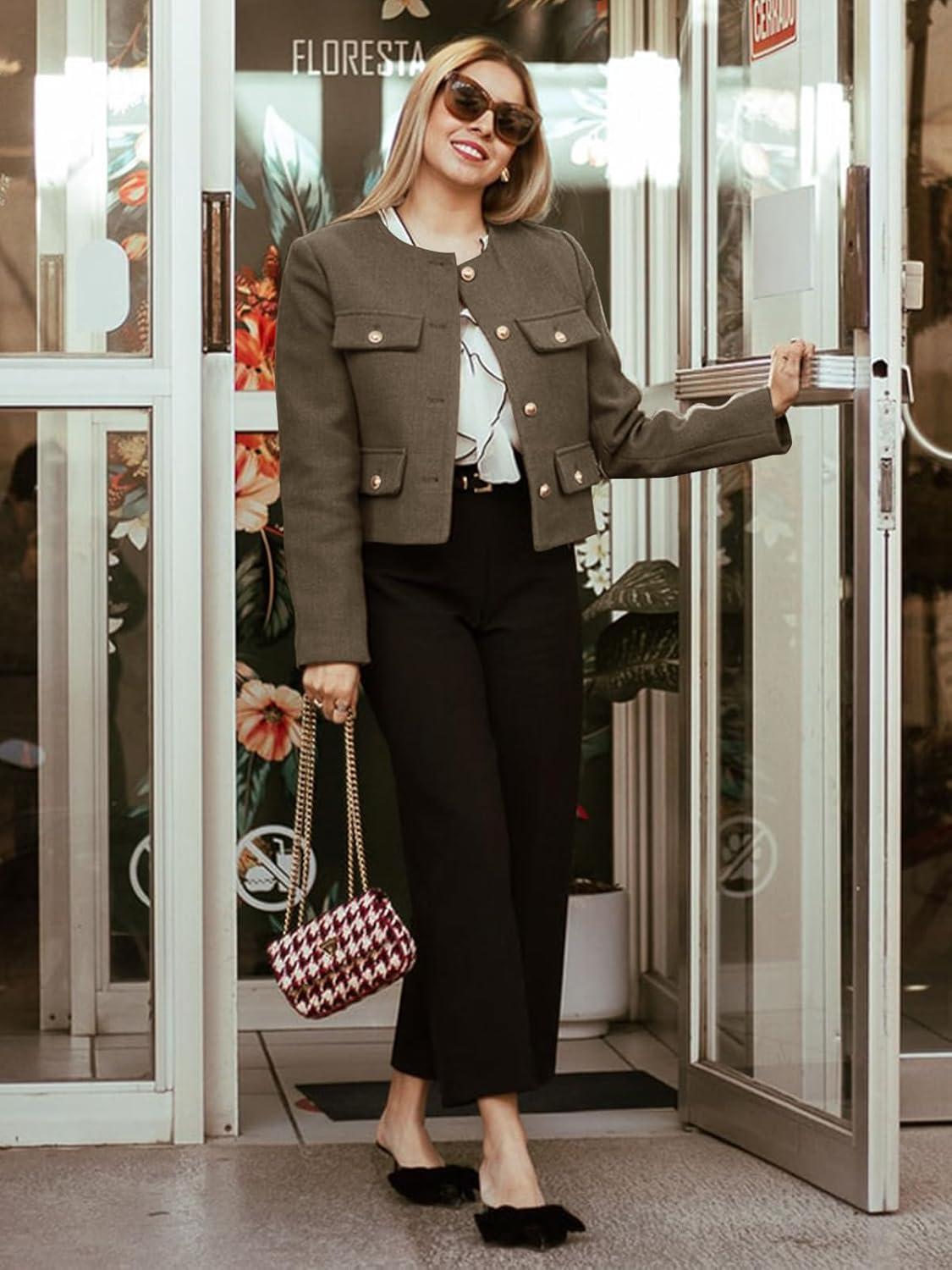 Be the first to review “Cicy Bell Womens Cropped Tweed Blazers Jacket Collarless Button Down Business Casual Winter Coats 2026 Spring Outfits(Coffee)”