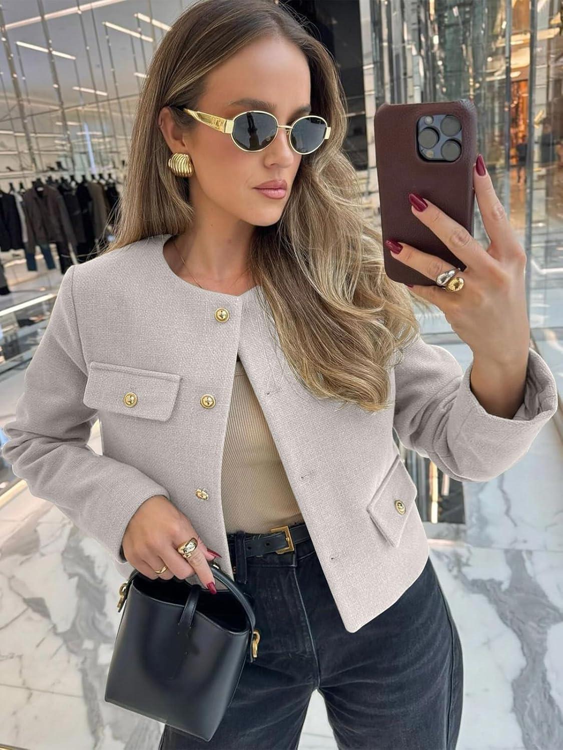 Be the first to review “Cicy Bell Womens Cropped Tweed Blazers Jacket Collarless Button Down Business Casual Winter Coats 2026 Spring Outfits(Light Grey)”