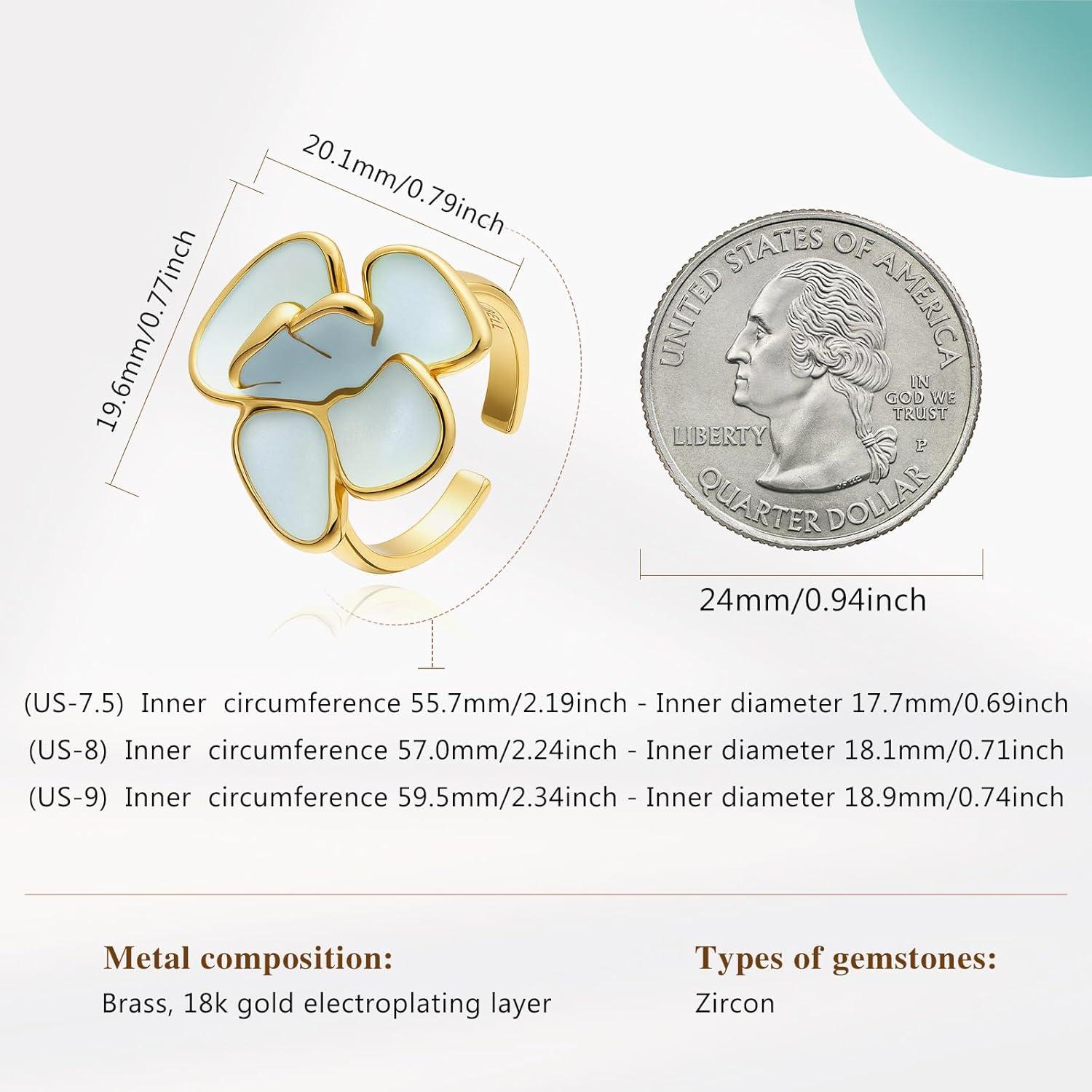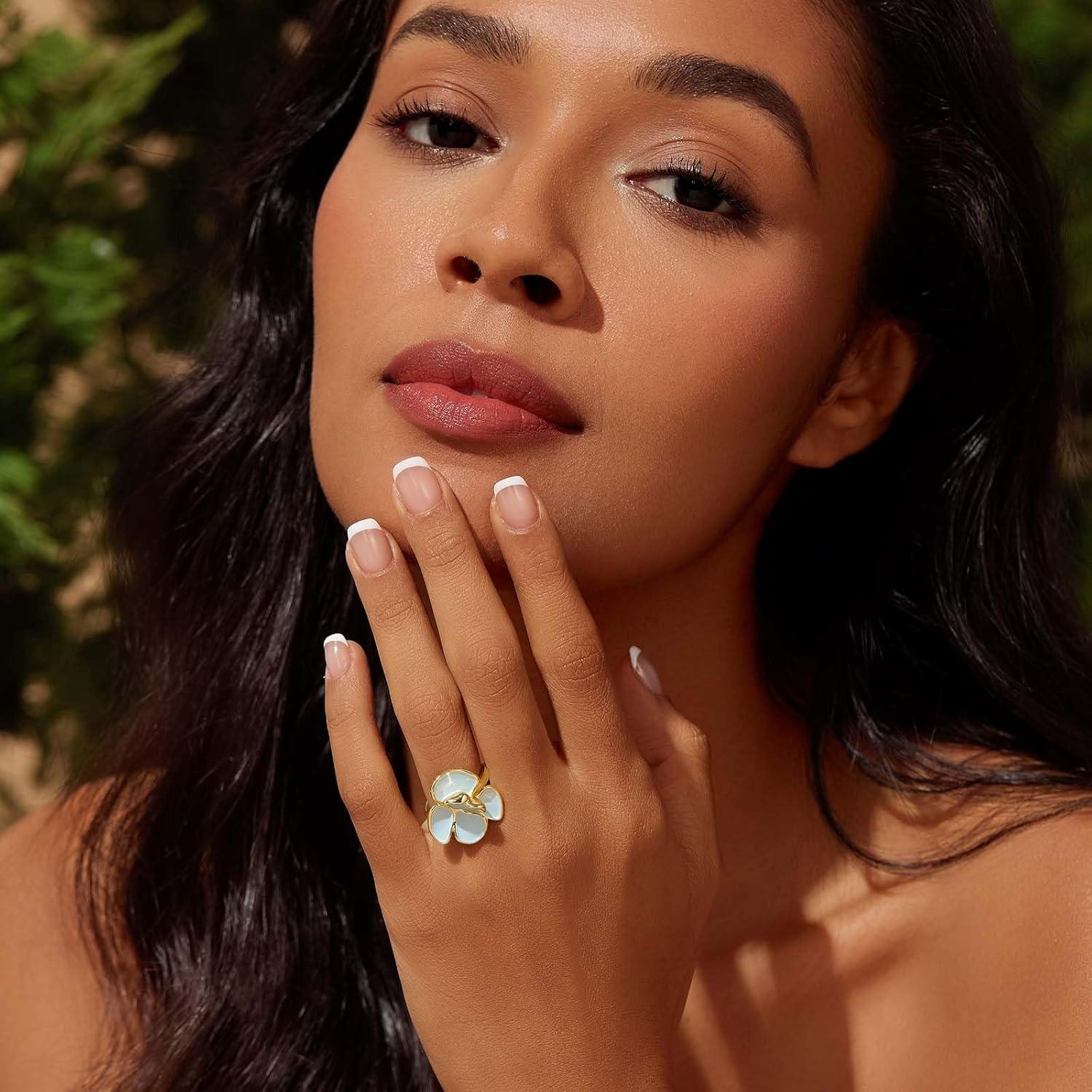 Cicy Bell Womens Floral Glazed Ring 18K Gold Plated Blue Flower Plants Stackable Rings Trendy Jewelry Gift For Mom Wife(Size 8)