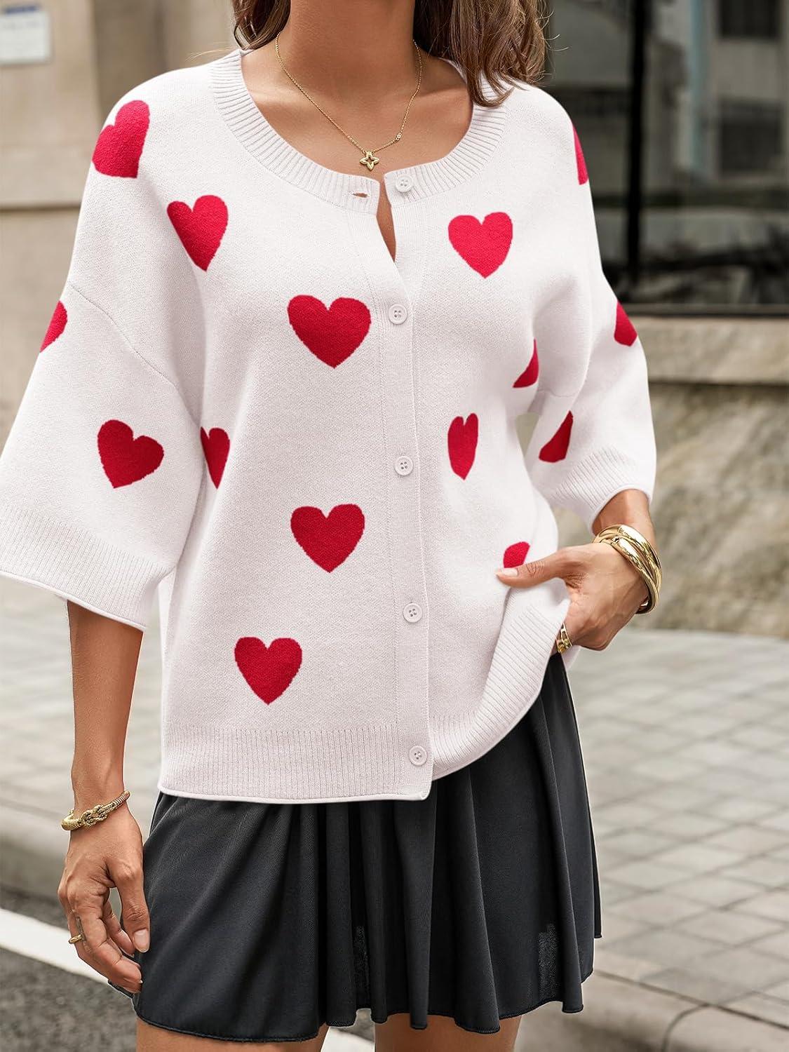 Cicy Bell Womens Half Sleeve Cardigan Sweaters Cropped Button Down Tops Oversized Lightweight Ribbed Knit Summer Outfits(Red1)