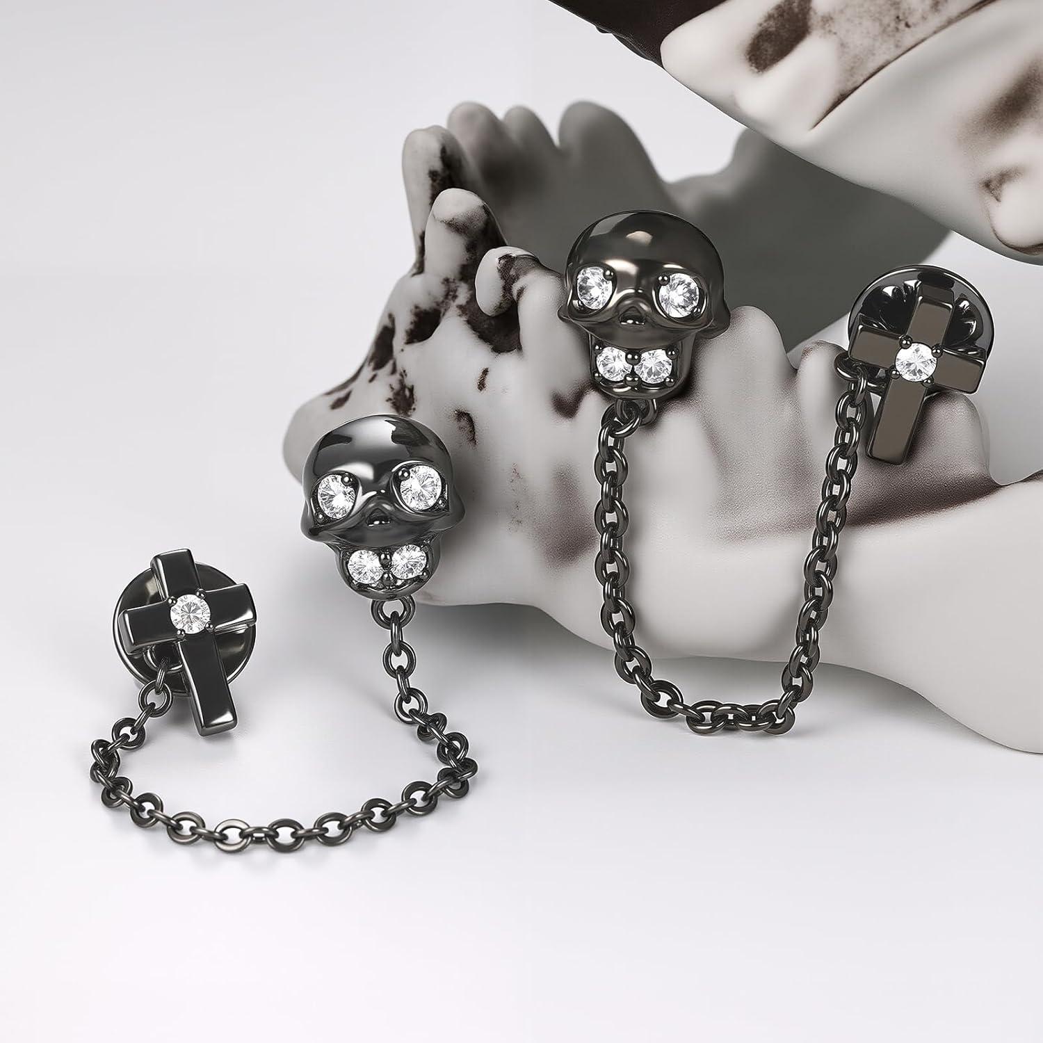 Cicy Bell Womens Hanging Chains Skull Brooch Suit Pin Gothic Halloween Tuxedo Tie Hat Scarf Badge Brooches Jewelry Pin Clips(Black)