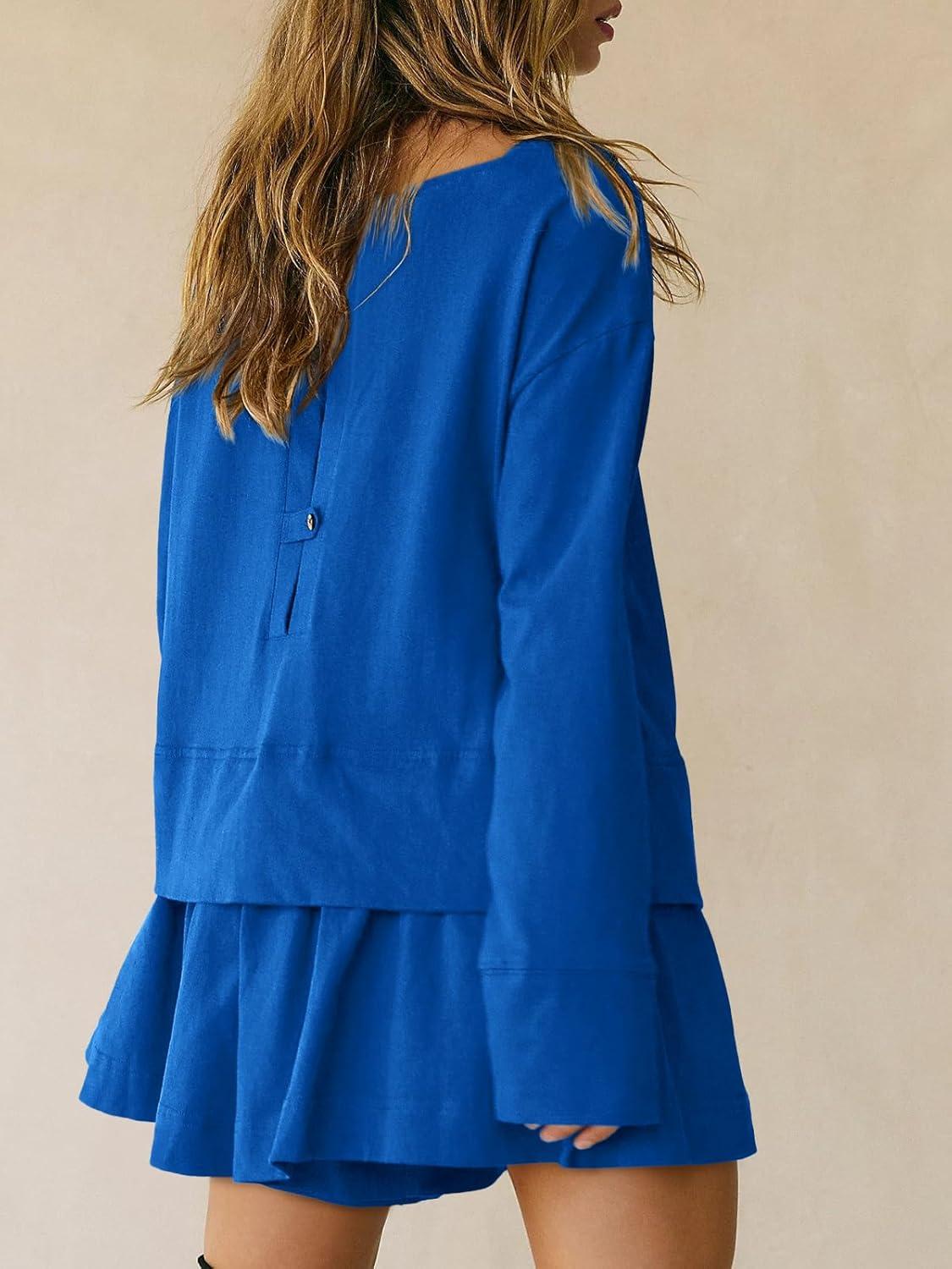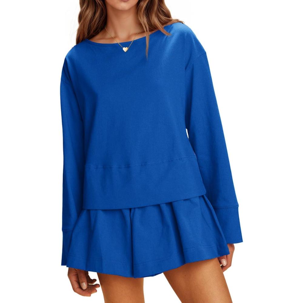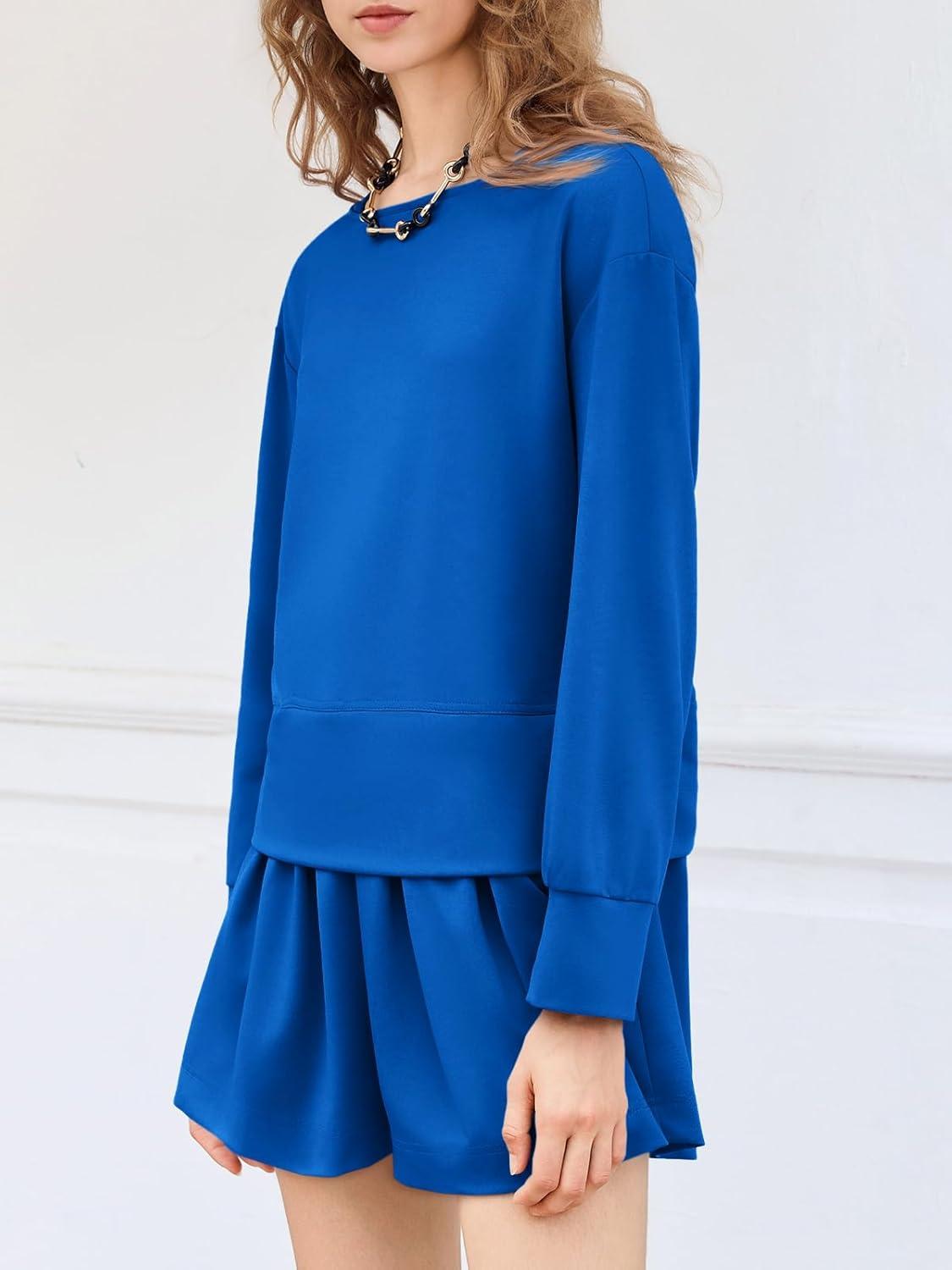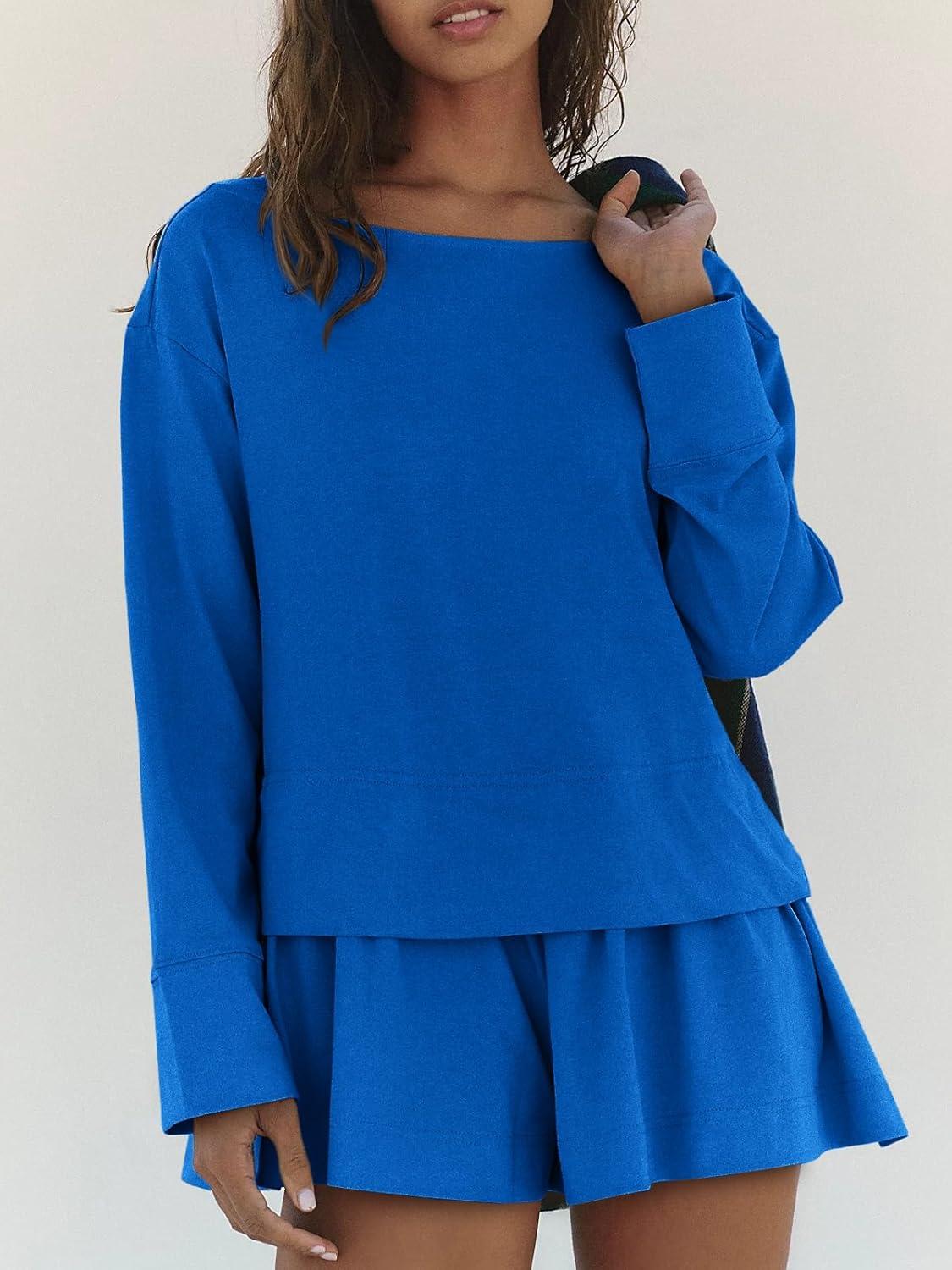 Cicy Bell Womens Long Sleeve Romper Dress Casual Loose Fit Boat Neck One Piece Shorts Jumpsuits Fall Outfits(Blue)