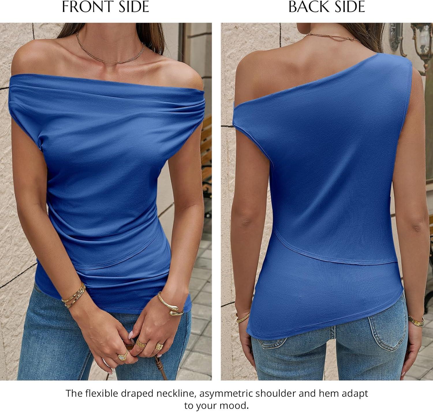Cicy Bell Womens Off One Shoulder Tops Cowl Neck Ruched Tank Tops 2026 Summer Asymmetrical Going Out Sleeveless Shirts(Royal Blue)