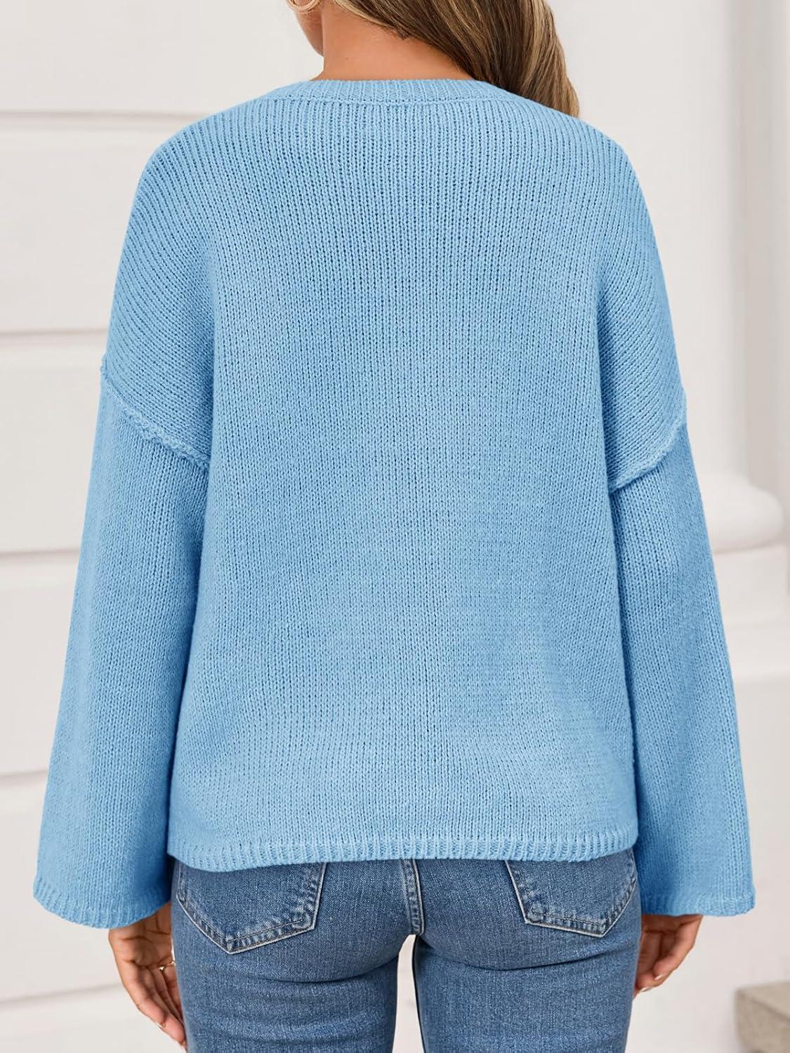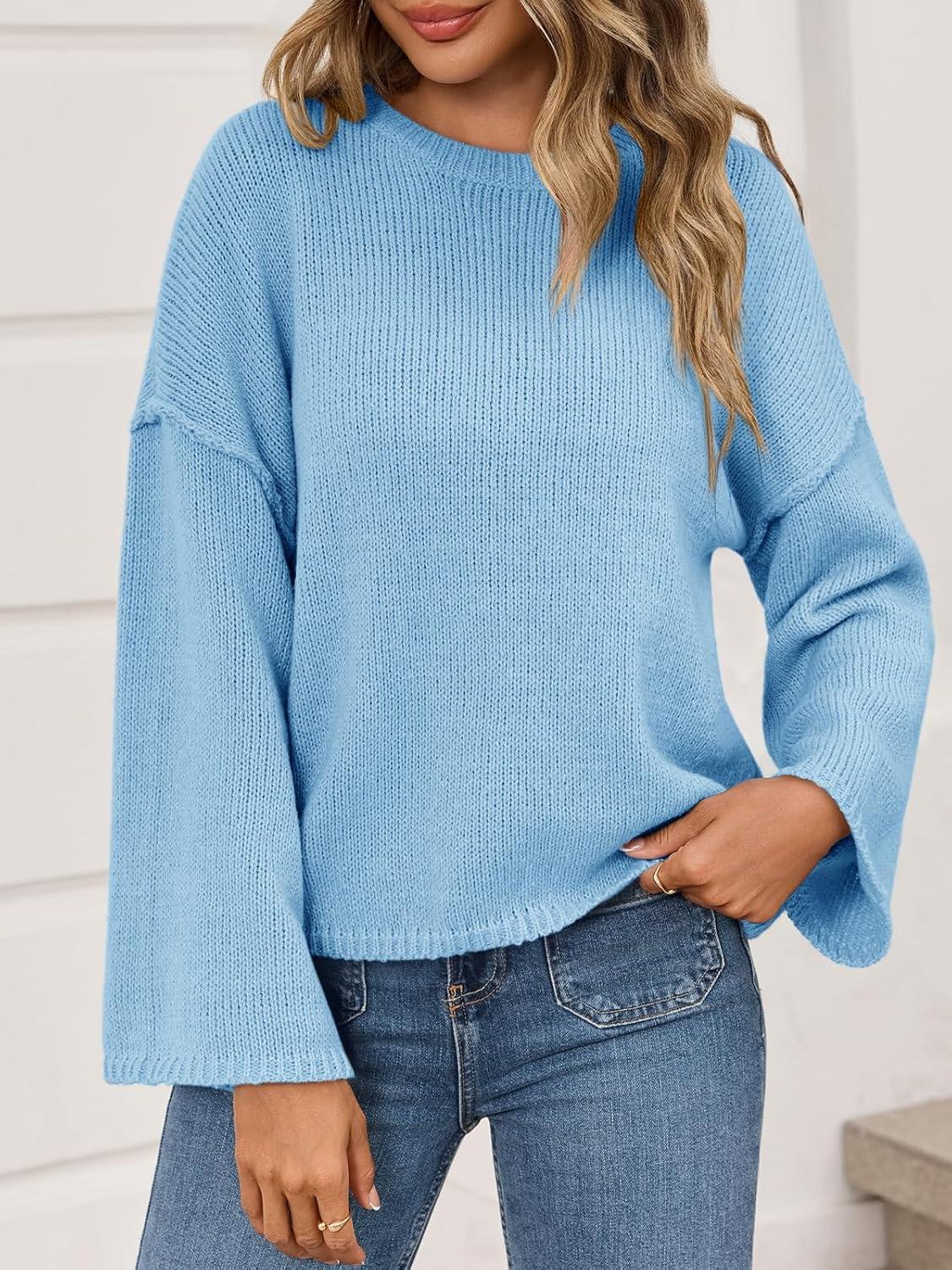 Cicy Bell Womens Oversized Crew Neck Sweater Fall Long Sleeve Knit Tops Trendy Casual Loose Fit Pullover Sweaters(Blue)