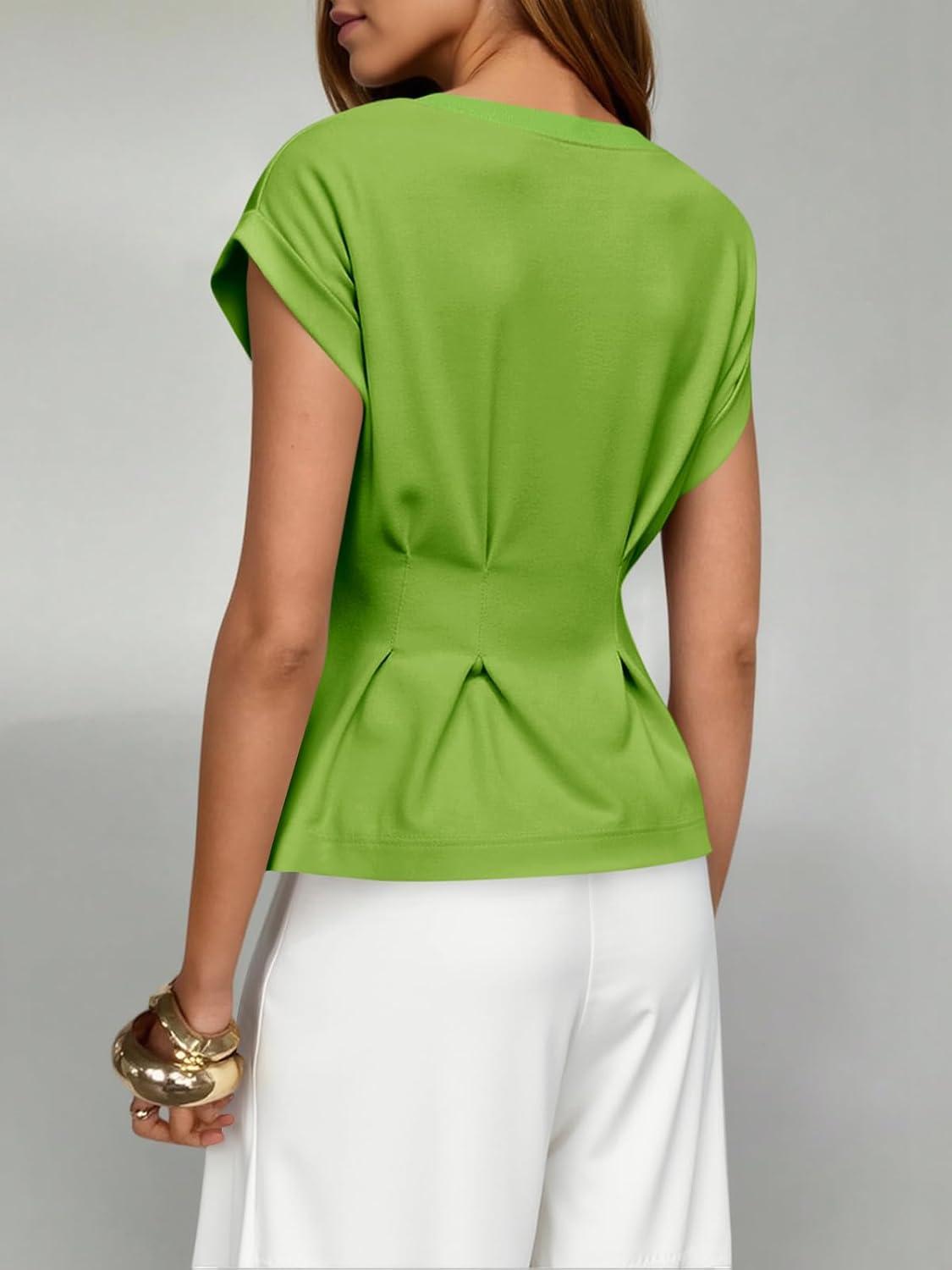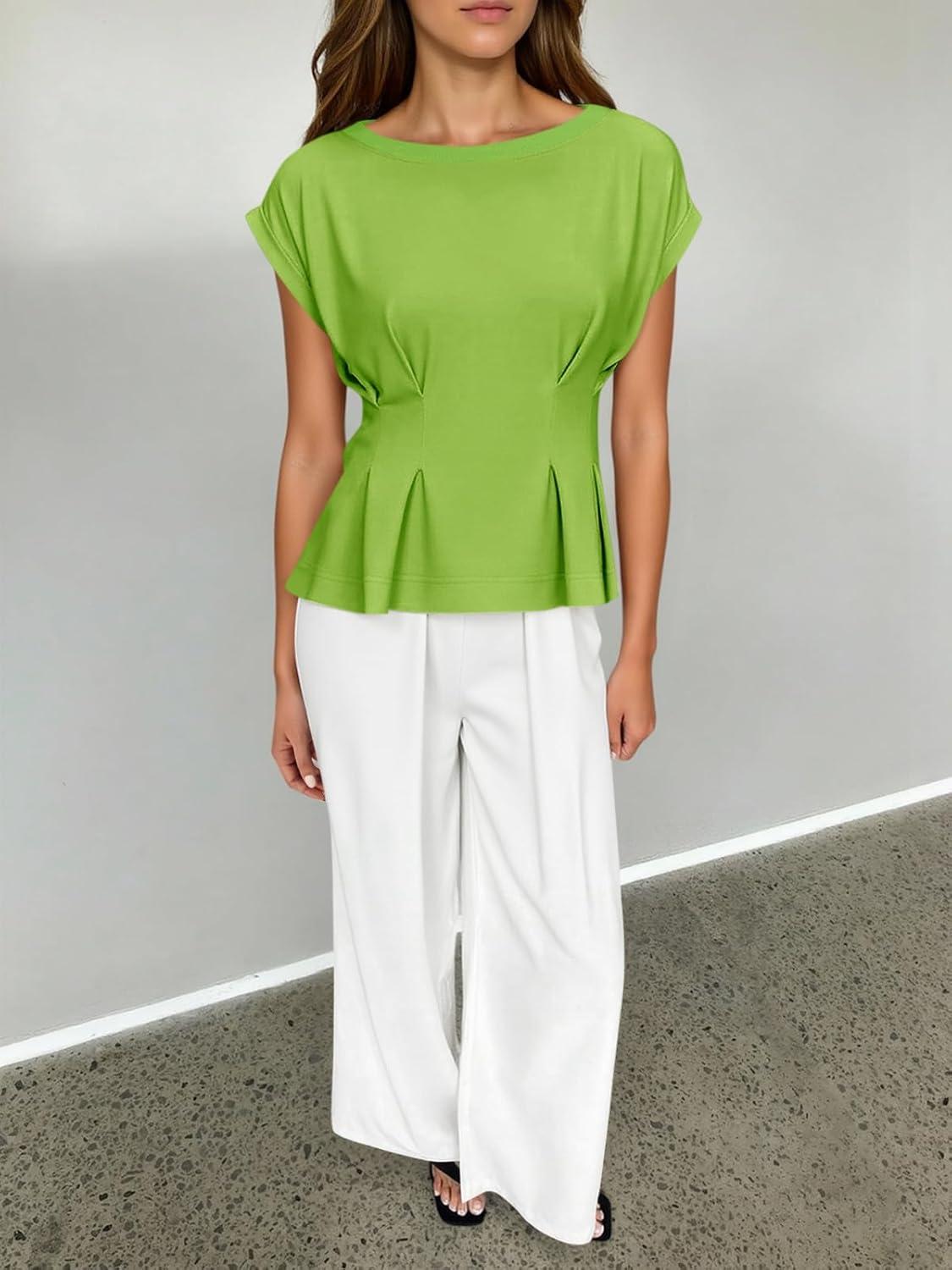Cicy Bell Womens Peplum Tops Summer Babydoll Cap Sleeve T-Shirts Dressy Casual Crew Neck Pleated Blouses(Green)