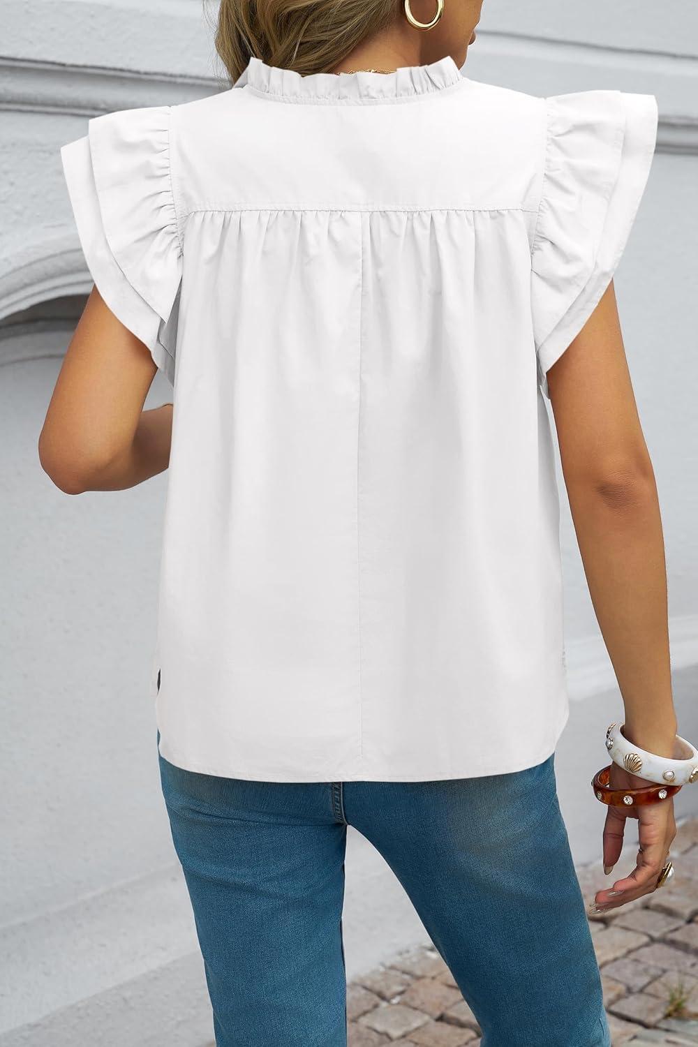Cicy Bell Womens Ruffle Cap Sleeve Tank Tops V Neck Dressy Casual Blouses Summer Sleeveless Cotton Shirts(White)