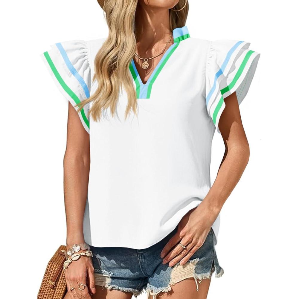 Be the first to review “Cicy Bell Womens Ruffle Color Block Tank Tops V Neck Dressy Casual Blouses Loose Fit Pleated Cotton Shirts(White)”