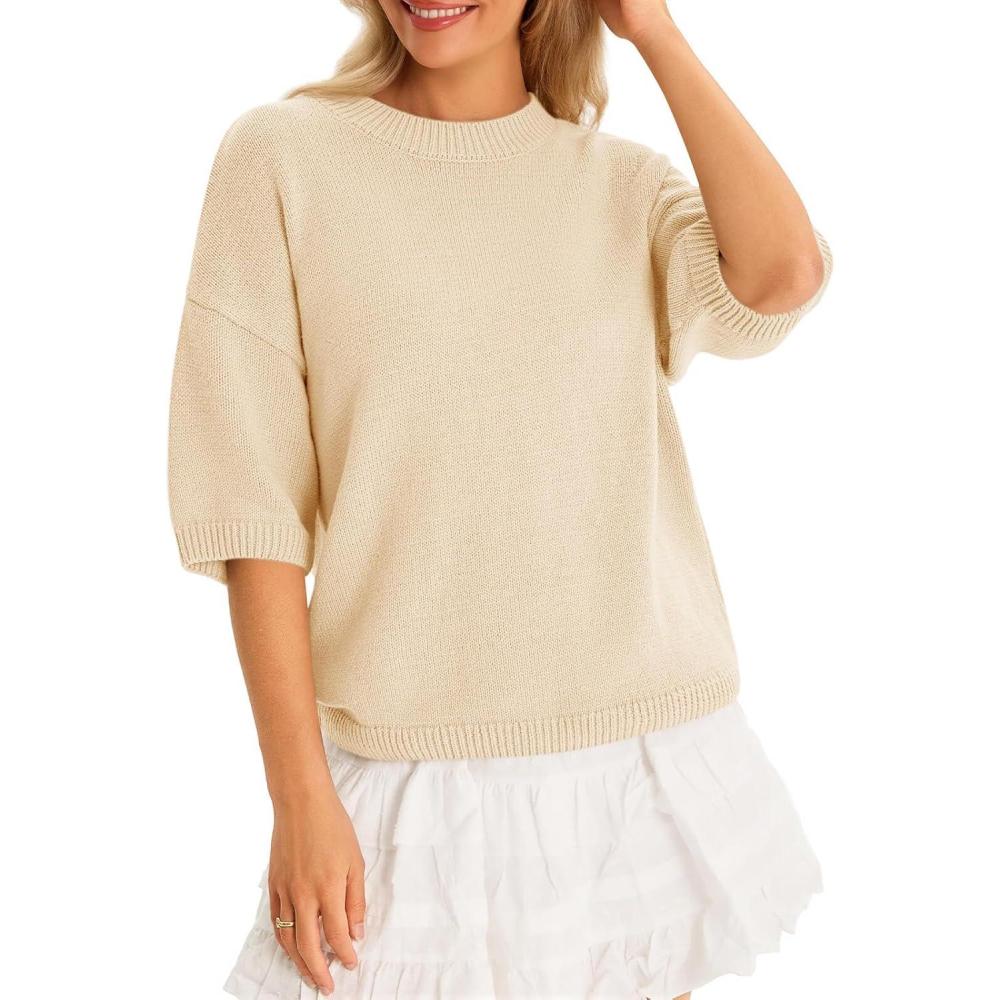 Cicy Bell Womens Short Sleeve Sweaters Oversized Crew Neck Knit Pullover Tops Summer Loose Fit Sweater(Beige)