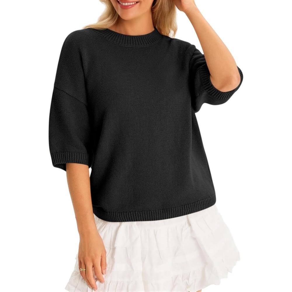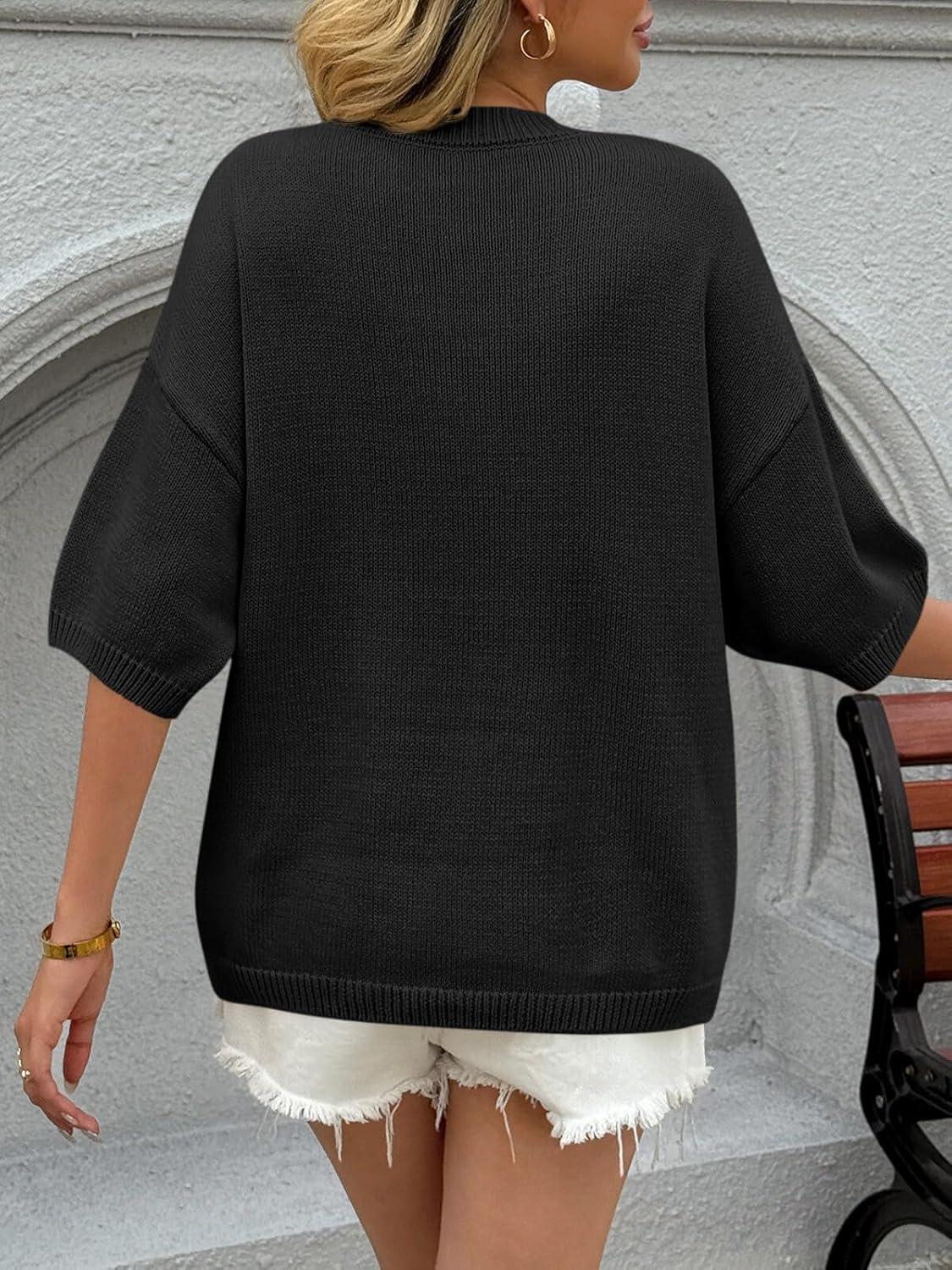 Cicy Bell Womens Short Sleeve Sweaters Oversized Crew Neck Knit Pullover Tops Summer Loose Fit Sweater(Black)