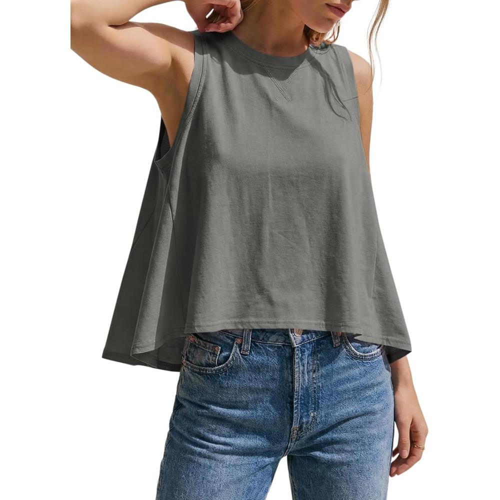 Cicy Bell Womens Summer Flowy Tank Tops Sleeveless Crew Neck Trendy Casual Shirts Loose Fit Swing Tees(Dark Grey)