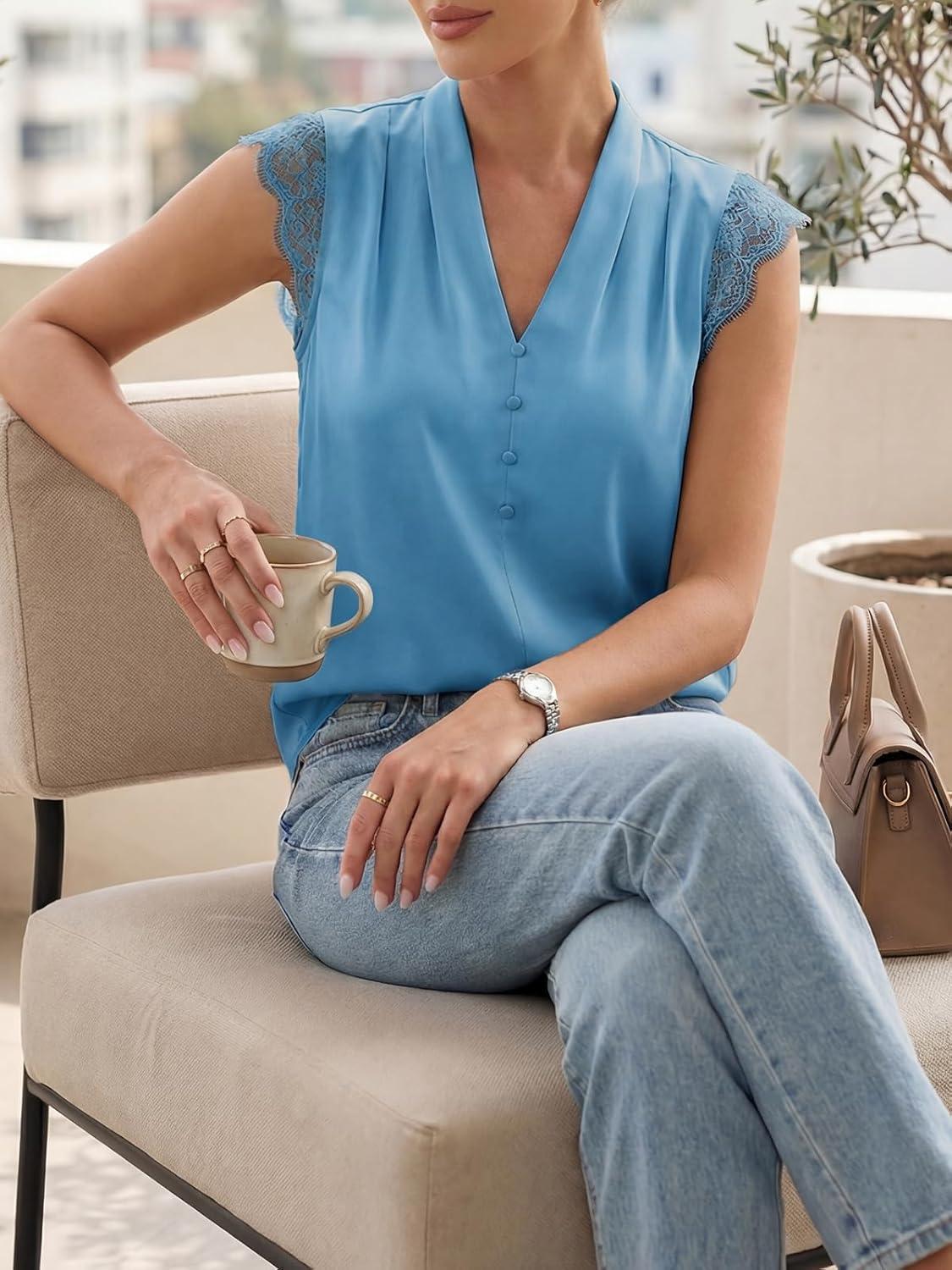 Be the first to review “Cicy Bell Womens Summer Silk Satin Tank Tops Lace Cap Sleeve V Neck Casual Dressy Shirt Loose Fit Button Work Blouse(Lake Blue)” Cancel reply