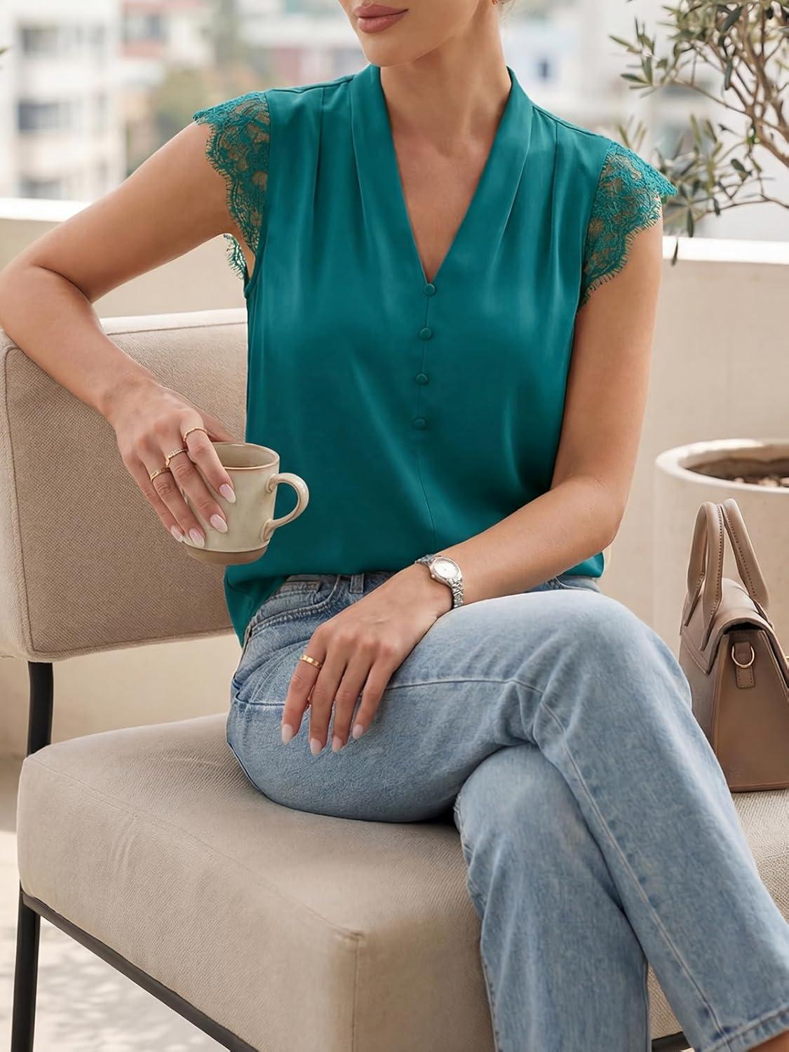 Be the first to review “Cicy Bell Womens Summer Silk Satin Tank Tops Lace Cap Sleeve V Neck Casual Dressy Shirt Loose Fit Button Work Blouse(Teal)” Cancel reply