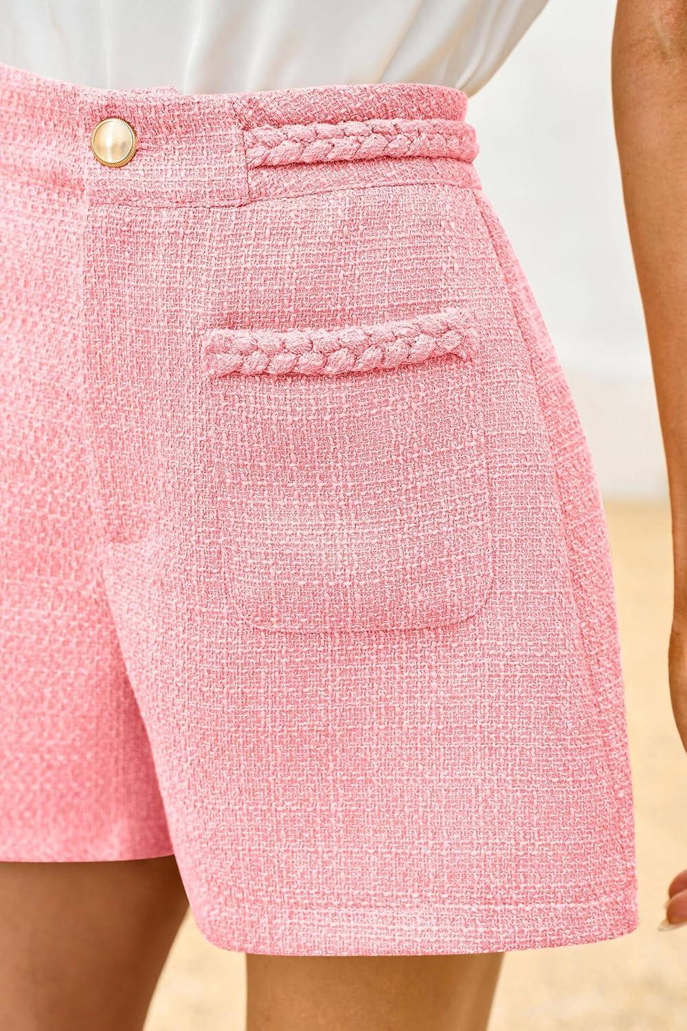 Embrace the 2025 spring and summer fashion with our Womens Tweed Summer Shorts, featuring a high waisted, wide leg silhouette that effortlessly blends comfort and elegance, making them ideal for any casual outing.These linen casual shorts for women are easy to pair with your favorite tops or beachwear, ensuring you look chic whether you're heading to the beach or enjoying a casual day out.Enjoy the convenience of front pockets in these dressy casual shorts, allowing you to keep your essentials close at hand while maintaining a polished look.Crafted from premium tweed fabric, these shorts offer breathability and durability, suit for those warm summer days while ensuring you stay fashionable.