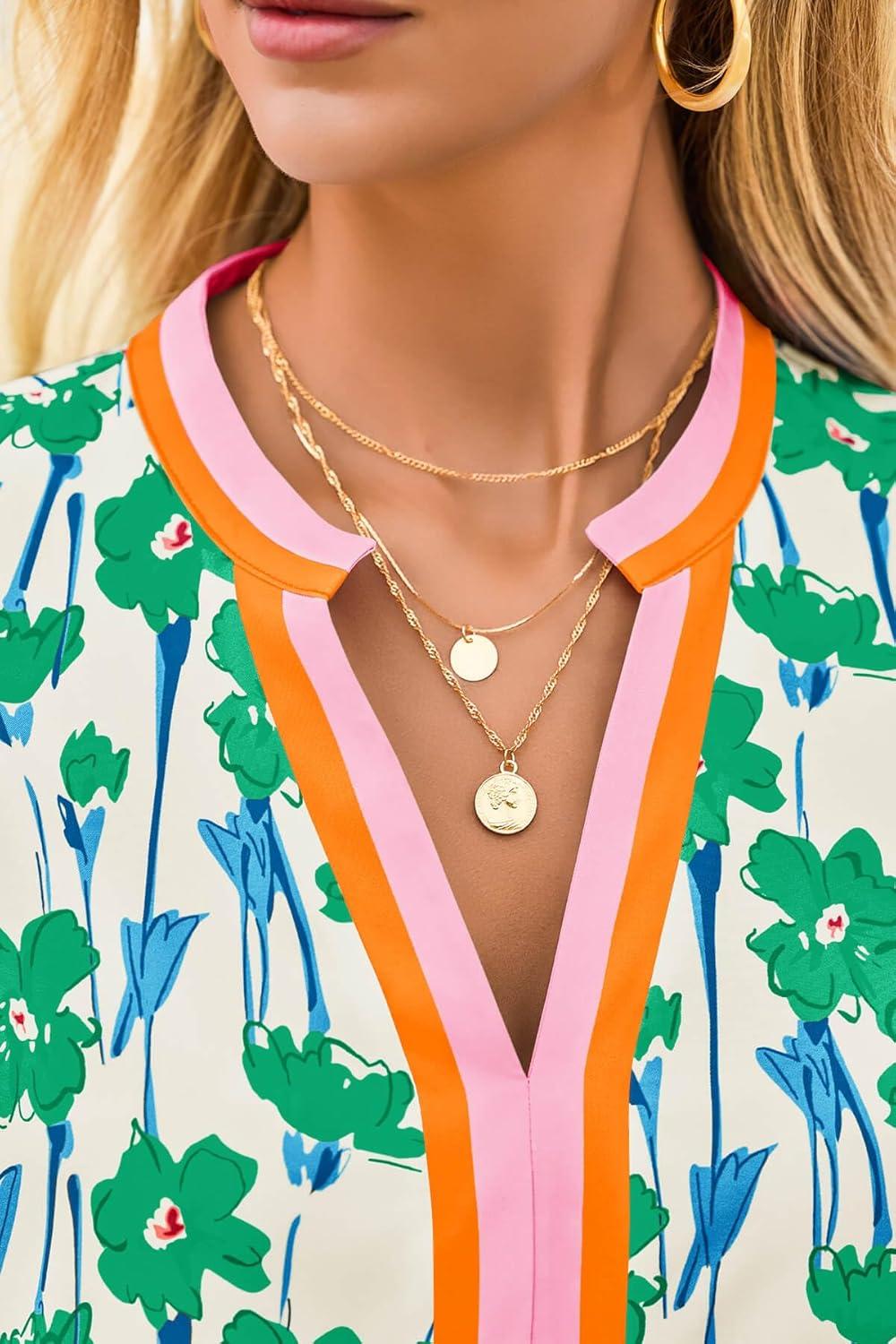 Cicy Bell Womens V Neck Floral Mini Dress Short Puff Sleeve Patchwork Summer Casual Boho Dresses(Pink)