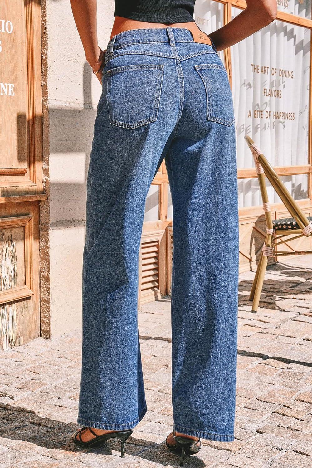 Cicy Bell Womens Wide Leg Baggy Jeans High Waisted Boyfriend Loose Denim Pants with Pockets(Navy)