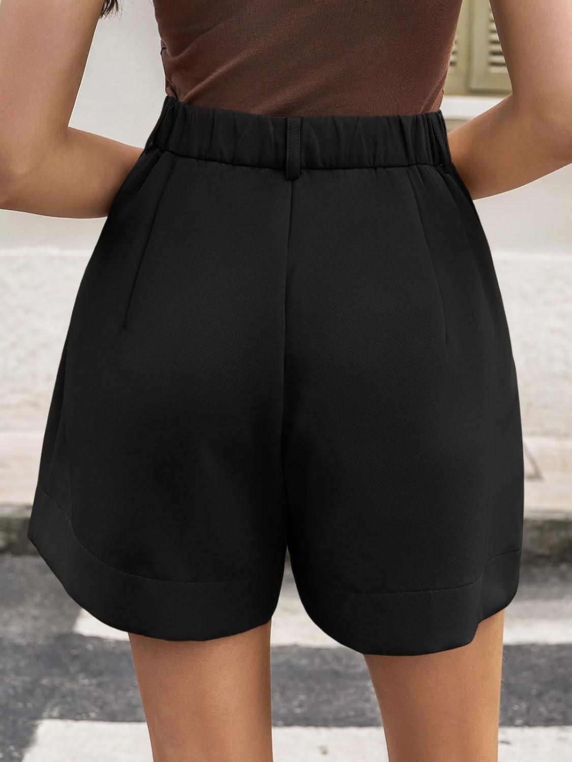 Cicy Bell Womens Wide Leg Dressy Shorts Casual Summer High Waisted Tailored Work Suits Shorts(Black)