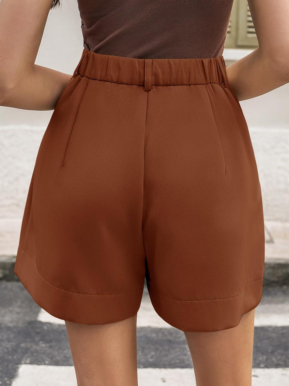 Cicy Bell Womens Wide Leg Dressy Shorts Casual Summer High Waisted Tailored Work Suits Shorts(Brown)