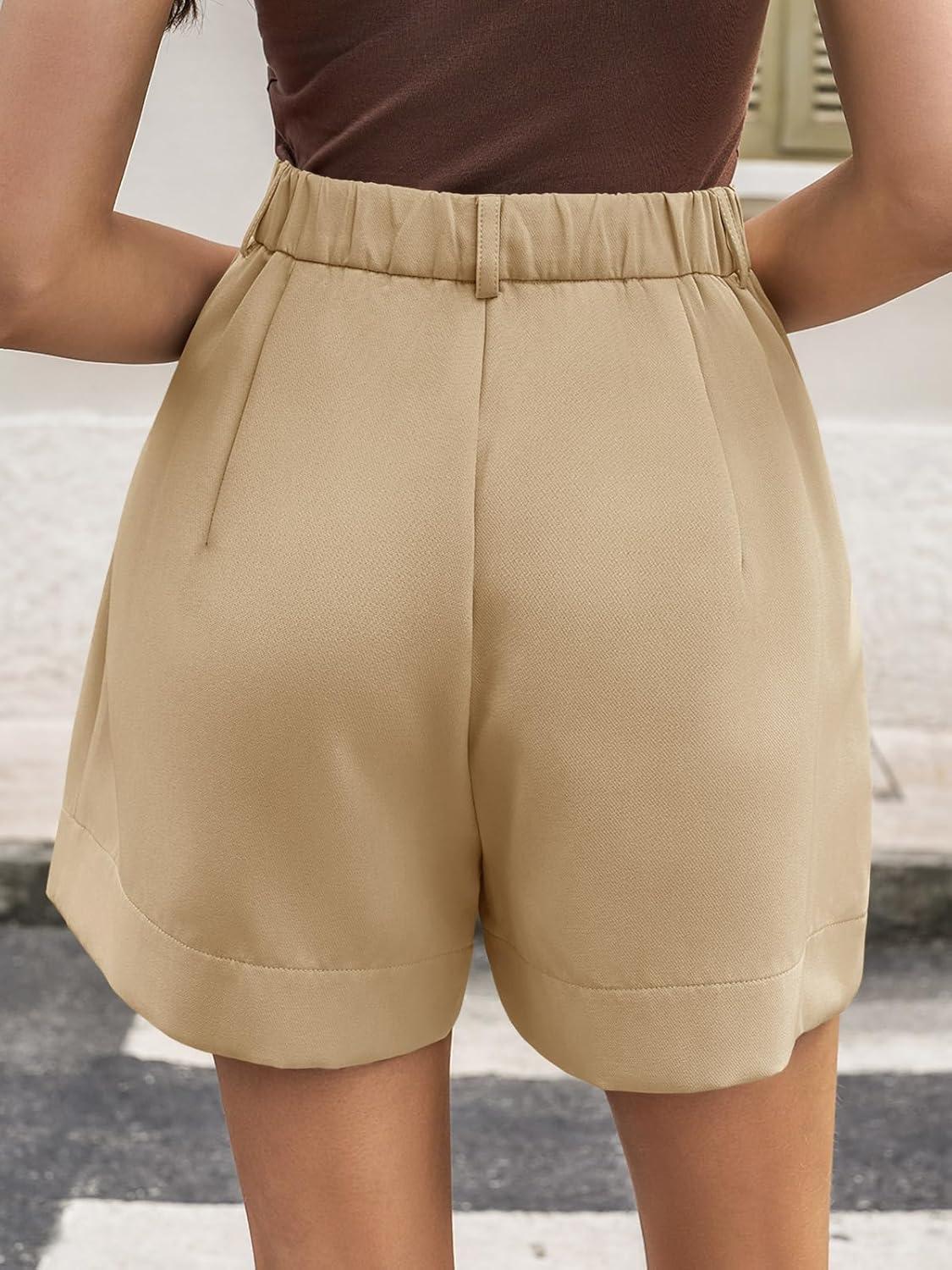 Cicy Bell Womens Wide Leg Dressy Shorts Casual Summer High Waisted Tailored Work Suits Shorts(Khaki)