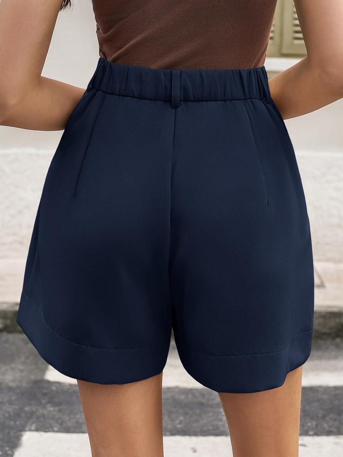 Cicy Bell Womens Wide Leg Dressy Shorts Casual Summer High Waisted Tailored Work Suits Shorts(Navy)